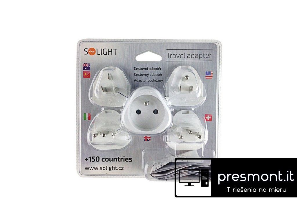 Solight cestovný adaptér, uzemnený, výmenné vidlice pre celý svet