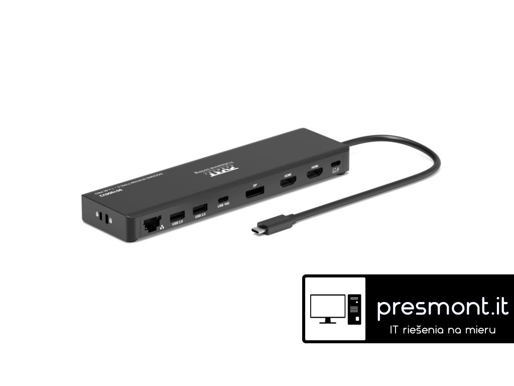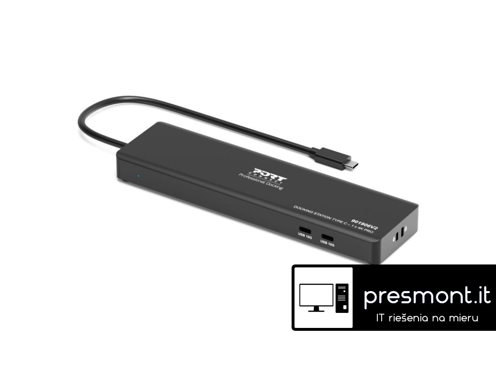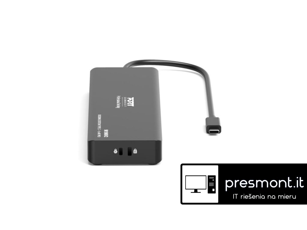 PORT CONNECT Univerzální cestovní dokovací stanice USB-C, 1× 4K / 3× Full HD Univerzální USB-C dokovací stanice PORT je určena pro uživatele, kteří potřebují kompaktní a přenosné řešení pro rozšíření konektivity notebooku. Umožňuje připojení jednoho externího monitoru v rozlišení 4K při 60 Hz nebo až tří externích monitorů ve Full HD a současně rozšiřuje notebook o síťové připojení, USB porty a další rozhraní prostřednictvím jediného USB-C kabelu. *Podpora 1 externího monitoru v rozlišení 4K @ 60 Hz *Podpora až 3 externích monitorů ve Full HD *Power Delivery až 100 W pro napájení notebooku *Připojení až 9 periferií jedním kabelem *Univerzální kompatibilita: Windows, macOS, ChromeOS *Integrovaný USB-C kabel o délce 55 cm *LED indikace napájení *Integrovaný bezpečnostní slot *Podpora PXE Boot &, Wake-on-LAN *Napájecí adaptér 100 W součástí balení Technické specifikace: Video výstup: *až 1× 4K @ 60 Hz, nebo *až 3× Full HD Možnosti zapojení videa: *HDMI + HDMI *DisplayPort + HDMI Vstup: 20 V / 5 A ,Výstup: ,20 V / 4,25 A Délka USB-C kabelu: 55 cm Plug &, Play: Ano Materiál: ABS + PCBA Kompatibilita: *Zařízení s rozhraním USB-C *Operační systémy Windows, macOS a ChromeOS Konektivita: , *1× DisplayPort *2× HDMI *1× RJ45 Ethernet (10/100/1000 Mbps) *1× USB-C 3.1 Gen 2 Power Delivery (až 100 W) – připojení k notebooku *2× USB-A 2.0 *2× USB-C 3.1 Gen 2 (10 Gbps) Rozměry a Hmotnost: *Rozměry produktu: 5,7 × 20,7 × 2,1 cm *Hmotnost produktu: 200 g Záruka: 2 RokyDodatočné parametre