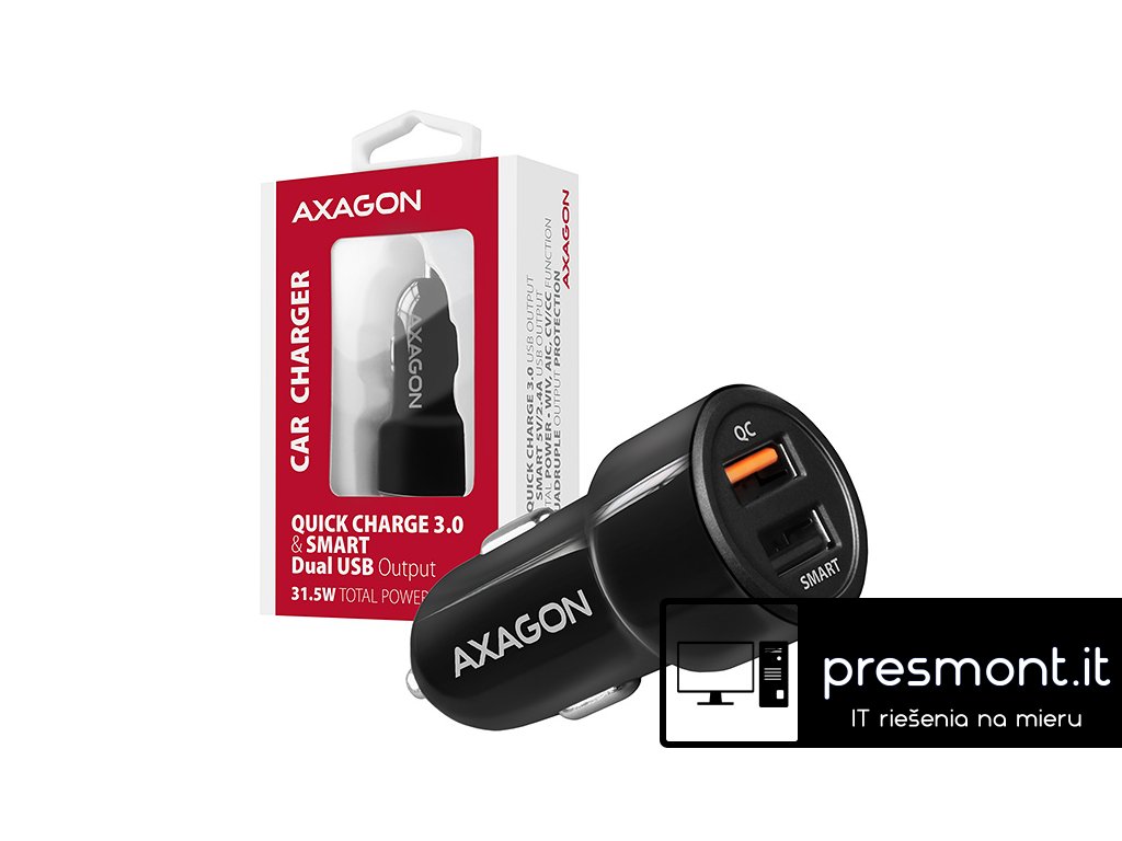 AXAGON PWC-QC5, QUICK a SMART nabíjačka do auta, 2x port QC3.0/AFC/FCP + 5V-2.6A, 31.5W