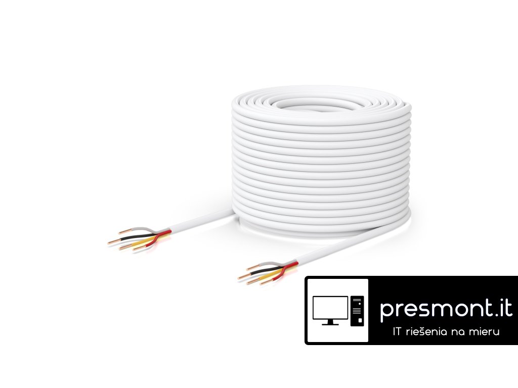UniFi Door Lock Relay Cable cívka o délce 152,4m s dvěma páry nízkonapěťového kabelu 2-párový relé kabel připojuje elektrický/magnetický zámek a snímač polohy dveří k Access Hubu 2x 18 vodič AWG pro elektrický/magnetický zámek 2x 22 vodič AWG pro snímač polohy dveří Technické parametry Hmotnost: 5,6kg Délka kabelu: 152,4m Barva kabelu: bílá Rozhraní: svorkovnice Průřez kabelu: 18AWG (černá, červená), 22AWG (žlutá, bílá) Materiál vodiče: měď Materiál pláště: termoplastický elastomer (TPE) Poloměr ohybu: 56mmDodatočné parametre