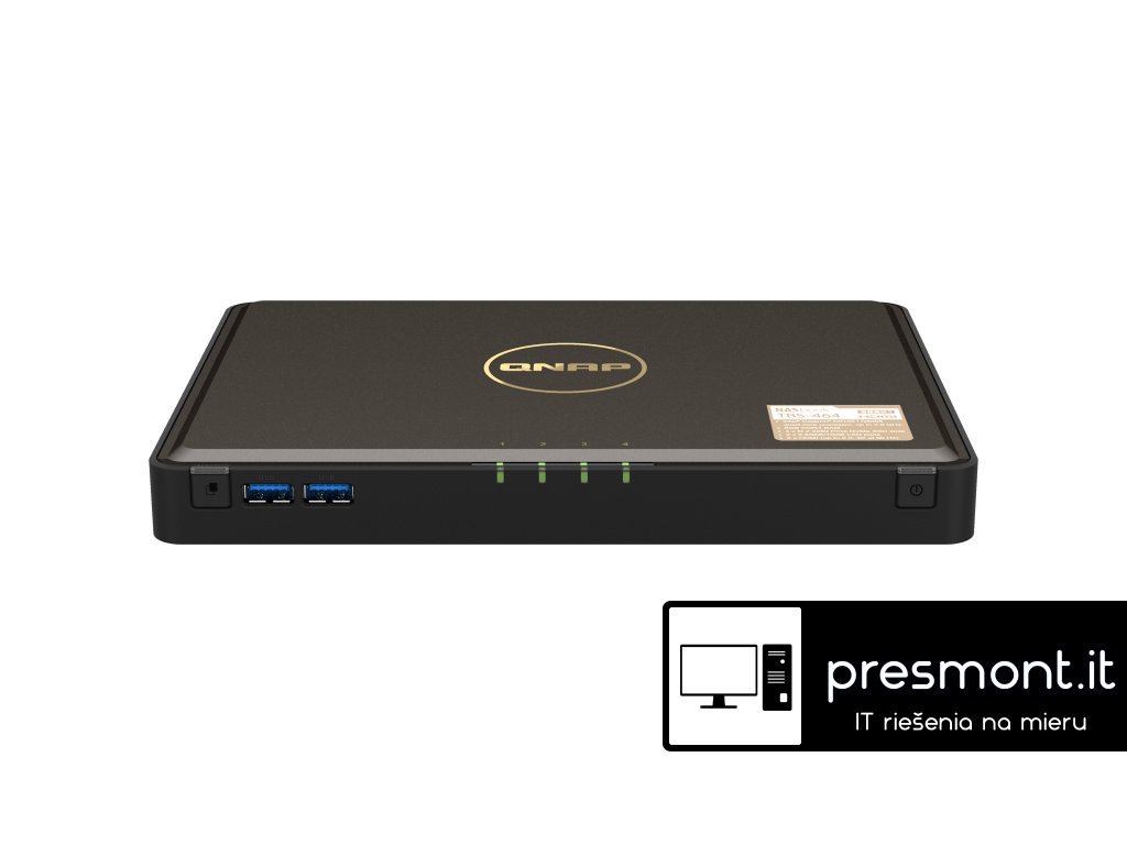 TBS-464-8G Kompaktní, přenosný a univerzální: Čtyřjádrový čtyřpozicový M.2 NVMe SSD NASbook Odkaz na web výrobce: https://www.qnap.com/cs-cz/product/tbs-464Seznam kompatibility pro tento model: https://www.qnap.com/cs-cz/compatibility/?model=593 Funkce Zařízení TBS-464 M.2 NVMe SSD NASbook je ideální pro moderní kanceláře, pracovní skupiny, schůzky a multimédia. Zařízení TBS-464 má čtyřjádrový procesor Intel Celeron N5105/N5095 (navýšení až na 2,9 GHz), dva porty 2,5GbE a porty USB 3.2 Gen 1 pro akceleraci přenosu souborů a všestranné aplikace. Zařízení TBS-464 poskytuje sloty M.2 NVMe SSD a podporuje HybridMount pro vytvoření prostředí hybridních cloudových úložišť, má až dva výstupy 4K HDMI 2.0, možnosti překódování médií a obsahuje aplikaci KoiMeeter, která umožňuje videokonference a bezdrátové prezentace pro malé firmy a vzdálené pracovníky.Od verze 5.2.2 již je možné do NAS nainstalovat také QuTS hero na bázi ZFS. OBSAH BALENÍ*TBS-464-8G *Ethernet Cable x 1*AC adaptér *Power Cord x 1*M.2 SSD Heatsink x 4* M.2 SSD Thermal Pads x 12 *Quick Installation Guide (QIG) SPECIFIKACECPU* Intel® Celeron® N5105/N5095 4-core/4-thread processor, burst up to 2.9 GHz Architektura CPU*x86 64 bitůJednotka s pohyblivou řádkovou čárkou*AnoŠifrovací modul *Ano (AES-NI) Hardwarově akcelerované překódování*Ano Systémová paměť*8 GB DDR4, nelze rozšířit Maximální paměť*8 GB DDR4, nelze rozšířit Paměť Flash*4 GB (dvojitá ochrana OS při spouštění)M.2 Slot*4 x M.2 2280 NVMe Gen3 x2 slotyPodpora akcelerace SSD cache*Ano 2,5 Gigabitový Ethernet port (2,5G/1G/100M)*2 (podporují také 10M)Probuzení po síti LAN*AnoRámec Jumbo*AnoPort USB 2.0 *3Port USB 3.2 Gen *2Snímač IR *Yes (RM-IR004) HDMI výstup *2, HDMI (až 2.0 rozlišení 3840 x 2160 @ 60Hz) Tvarový činitel *Stolní design Indikátory LED *SSD1-4 Tlačítka *Power, Reset, Copy Rozměry (V x Š x H) *30 × 230 × 165 mm Hmotnost (čistá) *0,8 kg Hmotnost (celková) *1,7 kg Provozní teplota *0 - 40 °C (32°F - 104°F) Teplota úložiště *-20 - 70°C (-4°F - 158°F) Relativní vlhkost *5 až -95 %, bez kondenzace Napájecí jednotka *Externí napájecí adaptér, 65 W, 100-240 V Spotřeba energie: Režim spánku HDD *18 W Spotřeba energie: Provozní režim, typický *28 W Ventilátor *1 x systémový ventilátor Zvuková hladina *25 db(A) Systémové varování *Bzučák Bezpečnostní slot Kensington *Ano Max. Number of Concurrent Connections (CIFS) - with Max. Memory *1500Více informací se dozvíte na stránkách výrobce