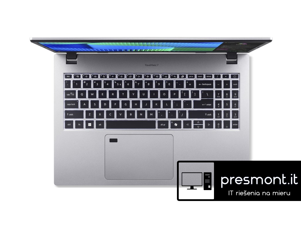 Acer TravelMate P2 15 (TMP215-55-TCO-39Z6) * TravelMate Sense App * certifikace TCO 9.0 * armádní standard MIL-STD 810H Operační systém: Windows 11 Professional 64 Procesor: Intel Core 3 100U (6 jader - 2P + 4E, 8 vláken, P-core 1,2/4,7 GHz, E-core 0,9/3,3 GHz, 10 MB cache) Paměť: 16GB DDR5 Počet slotů (celkem/volných): 2x DDR5 (2/1) Pevný disk: 512GB PCIe NVMe SSD PM4 + N (M.2) Optická mechanika: ne Čtečka paměťových karet: microSD Displej: 15,6'' FHD (1920x1080) antireflexní IPS, 300 nitů Grafická karta: Integrovaná Intel UHD Graphics 64EU Audio: stereo, 2x mikrofon Web kamera: FHD USB TNR Polohovací zařízení: OceanGlass Touchpad Klávesnice: bíle podsvícená s numerickým blokem Čtečka otisků prstů: ano Síť: GbE Bezdrátová komunikace: WLAN + Bluetooth (WIFI 6E Intel 802.11ax 2x2 MU-MIMO CNVi + BT 5.3 LE Audio) Porty USB: * 2x USB-C: USB4® 40Gb/s (DisplayPort přes USB-C/Thunderbolt™4/USB nabíjení 5V, 3A/DC-in port 20V, 65W s podporou napájení USB-C) * 2x USB 3.2 Gen 1 Další porty: * 1x RJ-45 * 1x HDMI 2.1 * 1x kombinovaný konektor pro sluchátka/mikrofon (3,5mm) * 1x bezpečnostní slot Kensington TPM 2.0: ano Baterie: 53Wh Li-ion Napájení: 65W USB-C AC adaptér PCR50% Barva: stříbrná (Pure Silver) Rozměry: 361,3x242,8x20,35mm Hmotnost: cca 1,63kg Záruka: 2 rokyDodatočné parametre