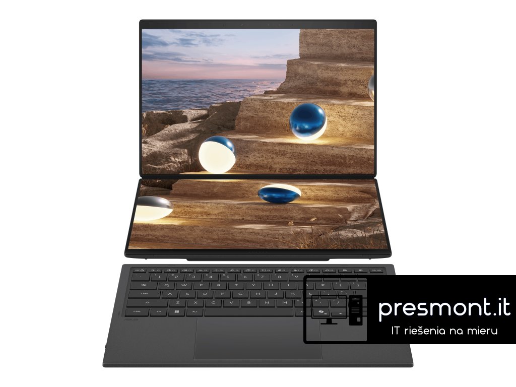 ASUS Zenbook Duo (UX8407AA-OLED086W) *armádní standard MIL-STD 810H *stylus s bezdrátovou nabíječkou (podpora ASUS Pen SA205H-MPP2.6) *pouzdro (Sleeve) Operační systém: Windows® 11 Home Procesor: Intel Core Ultra X9 388H (16 jader, 16 vláken, 2,1/5,1 GHz, 18 MB cache) Neural procesor: Intel®, až 50TOPS Paměť: 32GB LPDDR5X na základní desce Počet slotů (celkem/volných): bez slotů (0/0) Maximální velikost: 32GB Pevný disk: 1TB M.2 NVMe™ PCIe® 4.0 SSD Rozšiřitelné sloty pevného disku: 2x M.2 2280 PCIe 4.0x4 Optická mechanika: ne Čtečka paměťových karet: ne Displej: Displej: dotykový 14'' 3K (2880x1800) 16:10 lesklý OLED, 144Hz, 0,2ms, 500 nitů, DCI-P3 100%, VESA CERTIFIED Display HDR True Black 1000, PANTONE Validated Grafická karta: Integrovaná Intel Arc/Intel Graphics Audio: 2x repro, technologie Smart Amp, mikrofon Web kamera: FHD s IR Polohovací zařízení: Precision Touchpad Podsvícená klávesnice: ne Numerická klávesnice: ne Čtečka otisků prstů: ne Pero: ano Síť: ne Bezdrátová komunikace: WLAN + Bluetooth (Wi-Fi 7, 802.11be, třípásmová, 2*2 + Bluetooth® 5.4) Porty USB: *1x USB 3.2 Gen 2 typu A (až 10Gb/s) *2x Thunderbolt™ 4 (až 40Gb/s) s podporou DP/PD Další porty: *1x HDMI 2.1 TMDS *1x kombinovaný konektor pro sluchátka/mikrofon (3,5mm) Zabezpečení: Trusted Platform Module (TPM) 2.0, infračervená webkamera s podporou Windows Hello Baterie: 99Wh, 4S1P, 4článková Li-ion Napájení: 100W AC adaptér, USB-C Barva: šedá (Moher Gray) Materiál: hořčík + hliník Rozměry: 310,1x208,6x19,6-23,4mm (klávesnice: 306,3x203,7x5,1-5,3mm) Hmotnost: cca 1,65kg Záruka: 2 roky Dvouletá prémiová záruka ASUS Pick-up and Return pro IČO i soukromé osoby ZDARMA. Podrobnosti naleznete zde: https://www.asus.com/cz/event/bezstarostny_servis Stránky výrobce: https://www.asus.com/laptops/for-home/zenbook/asus-zenbook-duo-ux8407/ Nabídku kompatibilních rozšíření ke standardní záruce naleznete v souvisejícím zboží.Dodatočné parametre