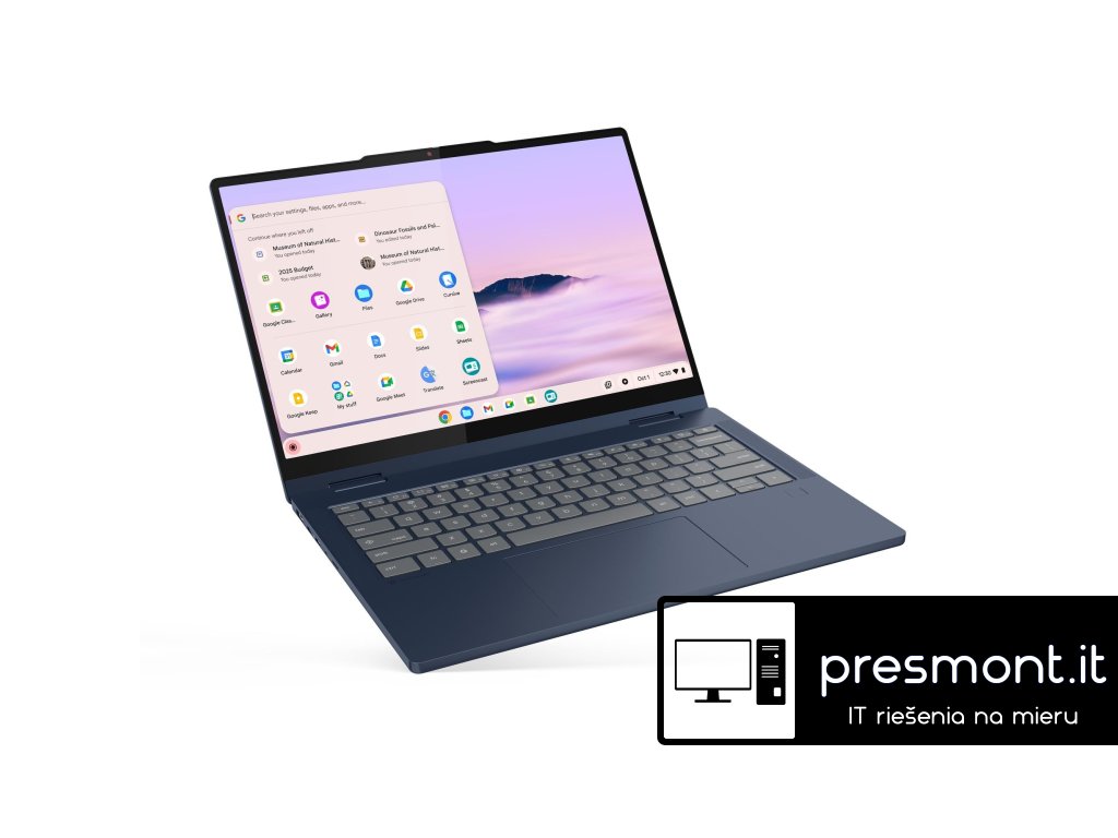 Lenovo Chrome 2in1 14ITN10 Operační systém: ChromeOS High Royalty Procesor: Intel® Core 3 N355 (8 jader / 8 vláken, Max Turbo up to 3.9GHz, 6MB Intel Smart Cache) Paměť: 8GB Integrovaná LPDDR5-4800 Pevný disk: 256GB UFS 2.2 Optická mechanika: Ne Čtečka paměťových karet: microSD Card Reader Displej: 14'' WUXGA (1920x1200) IPS 300 nitů lesklý/ Glossy / Ochrana proti otiskům prstů, 45% NTSC, 60Hz, TÜV Low Blue Light, Corning® Gorilla® Glass, dotykový displej Grafická karta: Integrovaná Intel® Graphics Webkamera: 5.0MP with Privacy Shutter Numerická klávesnice: Ne Podsvícená klávesnice: Ano Polohovací zařízení: TouchPad Síť: Ne Bezdrátová komunikace: WLAN (Wi-Fi® 6E, 802.11ax 2x2 + BT5.3) Porty: *2x 2x USB-A (USB 5Gbps) *2x USB-C® (USB 10Gbps), with USB PD 45-65W and DisplayPort™ 1.4 *1x Kombinovaný vstup pro sluchátka/mikrofon(3.5mm) Baterie: 50Wh Napájení: 65W USB-C® (3-pin) Barva: Modrá (Cosmic blue) Rozměry: 313 x 227 x 17,5 mm Hmotnost: Okolo 1,5kg Materiál: hliník (vrch), plast (spodek) Záruka: 2 roky Odkaz na stránky výrobce: https://psref.lenovo.com/Detail/Lenovo_Chrome_2in1_14ITN10?M=83LN0011MCDodatočné parametre