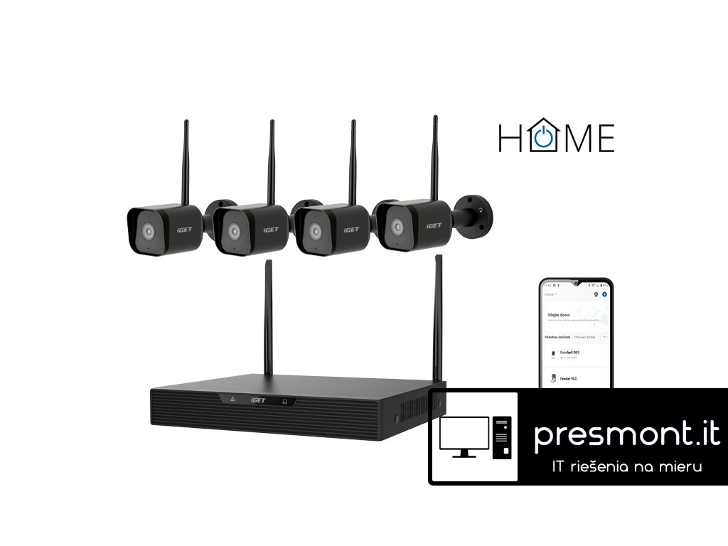 iGET HOME NVR N4C4 - CCTV bezdrôtový Wi-Fi set 2K+ rozlíšenie, 4CH NVR + 4x kamera so zvukom a IR