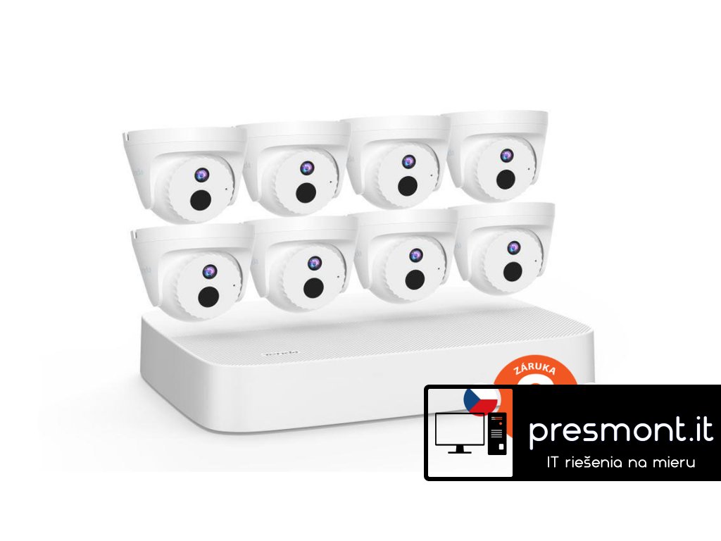 Tenda K8P-4CR - PoE kamerový set 4Mpx, 8CH NVR + 8x IP kamera 4Mpx IP67, zvuk, web. rozhranie, CZ app