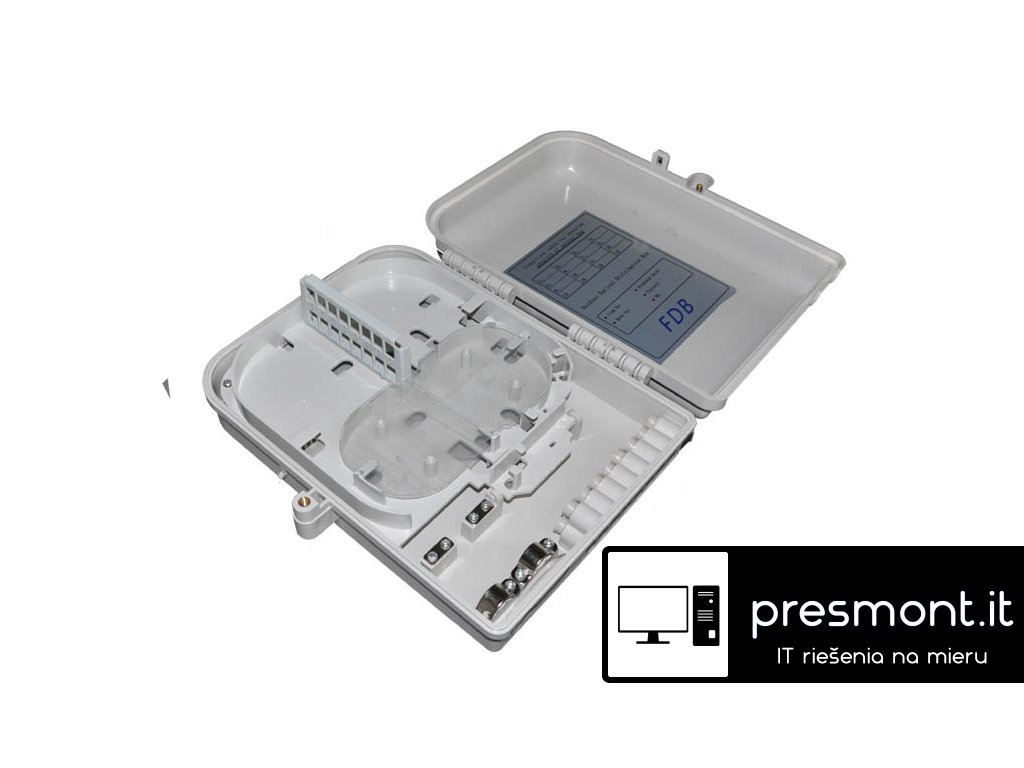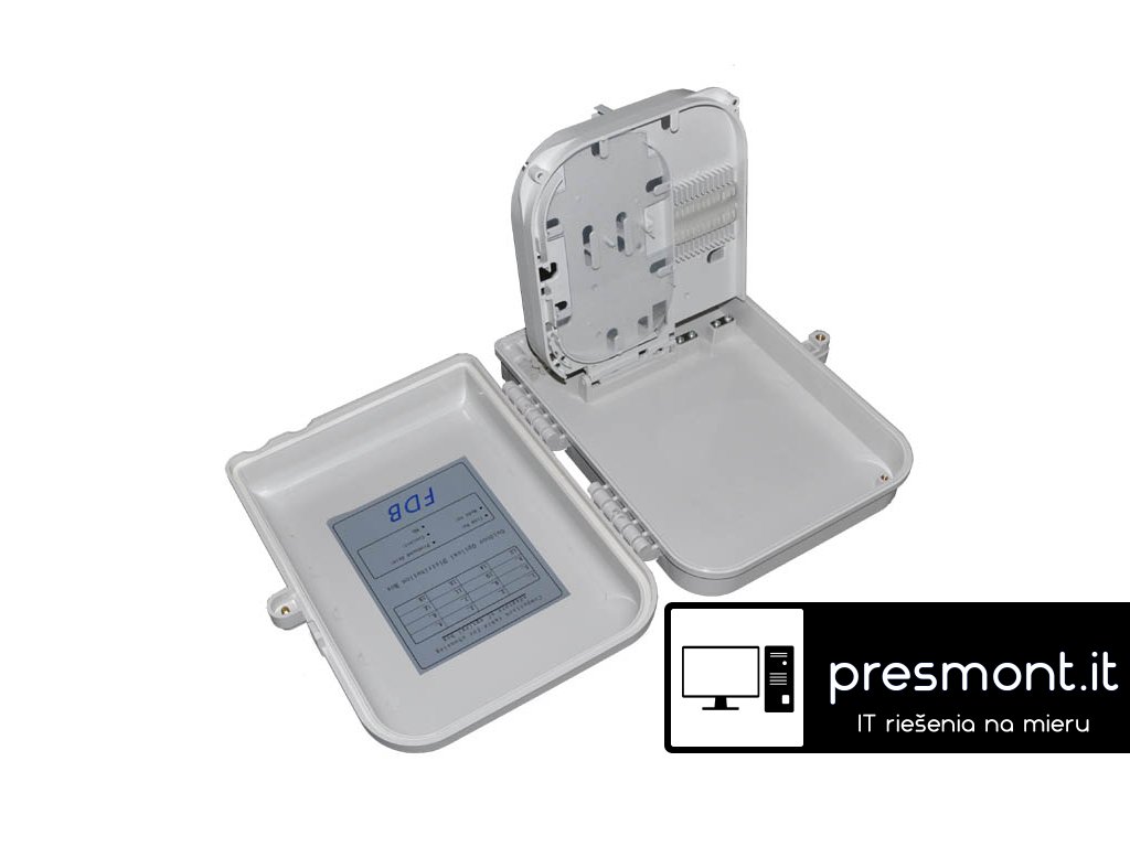 3565 Optický spojovací box pro 16 pigtailů vč. kazet Popis produktu: Vodotěsný nástěnný plastový rozvaděč. 2 otvory pro vstupní/výstupní kabel, 16 výstupní porty pro napojení koncových vývodů. Průmyslový standard uživatelského rozhraní, je vyrobeno z vysoce odolného plastu odolné proti UV záření Kabely uchyceny ve šroubových třmenech. Uzavření sříňky na šroub. Rozměry: 300*220*80mm Váha: 1,17kgDodatočné parametre