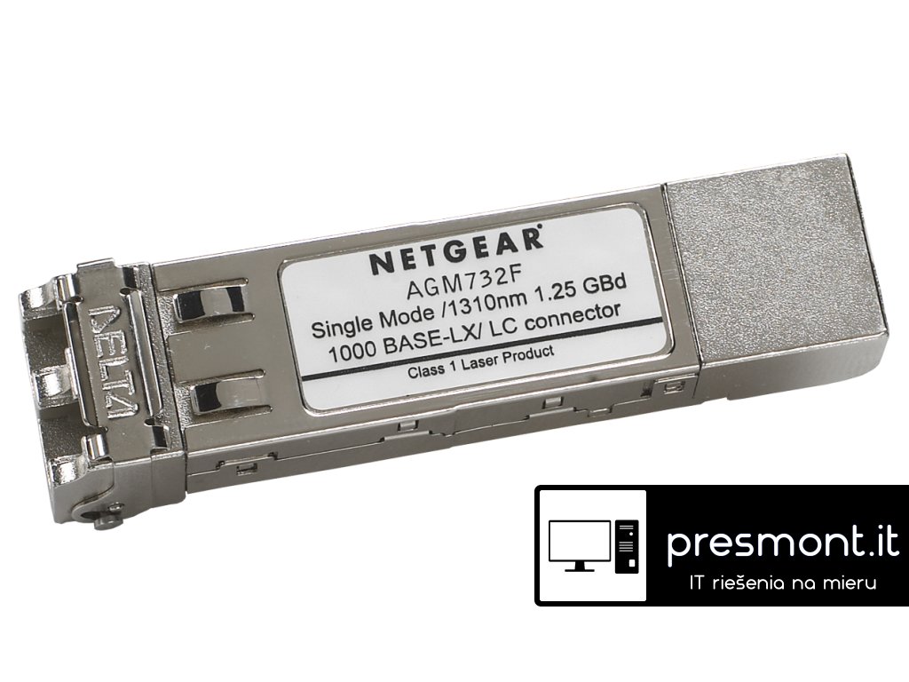 OVERVIEW Get Gigabit Ethernet “long-reach” fiber connectivity. The ProSAFE® GBIC Module is a LC duplex connector and meets SFP GBIC standard for use with any SFP GBIC compliant slot. NETGEAR Warranty *This product is backed by a NETGEAR limited 5-year Hardware Warranty. *http://www.netgear.com/about/warranty/ TECH SPECS *Gigabit Ethernet ''long-reach'' fiber connectivity *LC duplex connector *Fits into SFP interfaces of all Fully Managed Switches *Fits into SFP interfaces of all Smart Switches *Fits into SFP interfaces of JGS524F *Drives Gigabit Ethernet up to 10 km (6.2 miles) distances with 9/125µm single mode fiber cables *Ordering part number: AGM732F WEBSITE *Technical specification: http://www.netgear.com/business/products/switches/modules-accessories/agm732f.aspx#tab-overviewDodatočné parametre