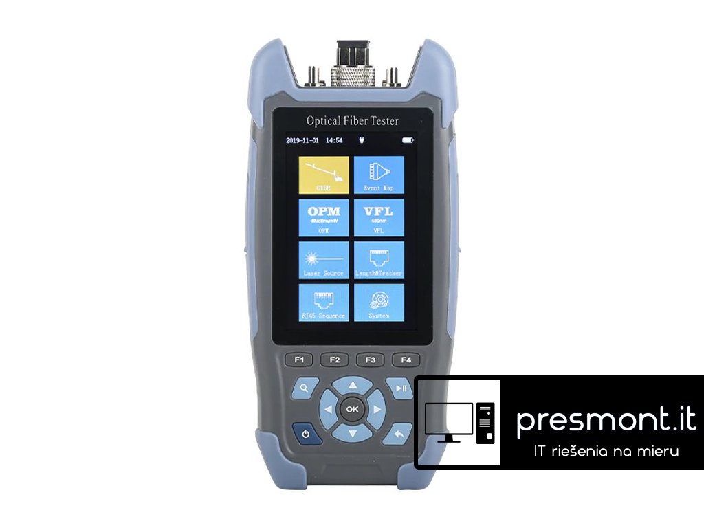 OTDR pro servisní měření a analýzu SM optických spojů. Umožňuje také měření délky a útlumu celého spoje, vzdálenosti a útlumu mezi dvěma body, lokalizaci poruch a další měření. Možnost uložit a vytisknout výsledky měření v grafu nebo Event Map. Přenášení dat mezi OTDR a PC přes MicroUSB. - Lehké a kompaktní provedení vhodné pro servisní práce - Měření na standardních vlnových délkách singlemode 1310 a 1550nm - Dynamický rozsah 24/22 dB - až 12 hodin provozní čas - Rozhraní: 1x RJ45,1x MicroUSB, 1x SD karta - Rozměry: 170 x 80 x 37 mm (Délka x Šířka x Výška) - Konektor FC/PC + SC/PC - Hmotnost testeru : 0,354kg - Balení obsahuje: hlavní jednotku, napájecí adaptér, lithium baterie, FC adaptér, SC adaptér, USB kabel, certifikát s kalibrací, uživatelskou příručku, CD s manuálem a softwarem, přenosnou brašnu, sada čistících ubrousků Model: FF-980REV Vlnové délky: 1310 a 1550nm Dynamický rozsah: 24/22dB Testovací rozsah: 3m to 64km 9 funkcí v 1 zařízení 1) OTDR 2) EVENT MAP (EXFO) - zobrazení trasy, počet konektorů na trase a útlumy 3) Optical Light Source - zdroj světla 4) Optical Power Meter - Power Meter 5) Visual Fault Locator (VFL) - laserové pero 6) RJ45 Ethernet Cable Sequence - správné zapojení Ethernetových kabelů (konektorů RJ45) 7) Ethernet Cable Distance - Délka Ethernetového kabelu 8) Ethernet Cable Tracker - Ethernetový kabelový sledovač 9) LED LightDodatočné parametre