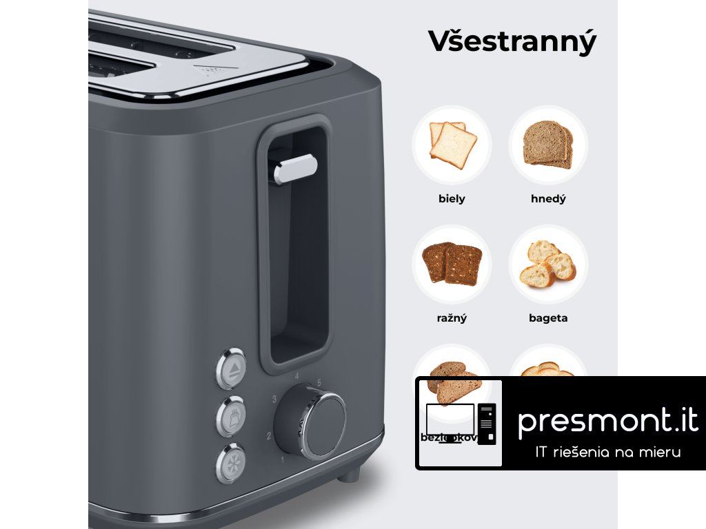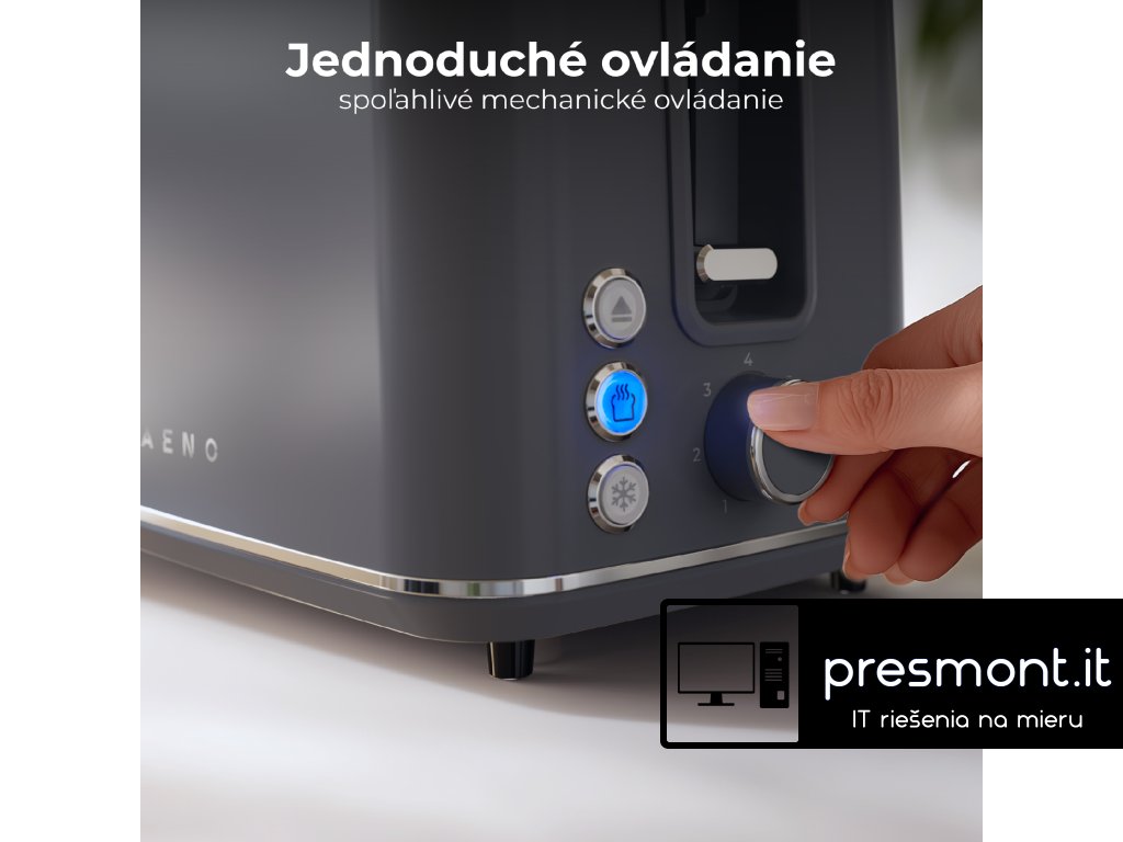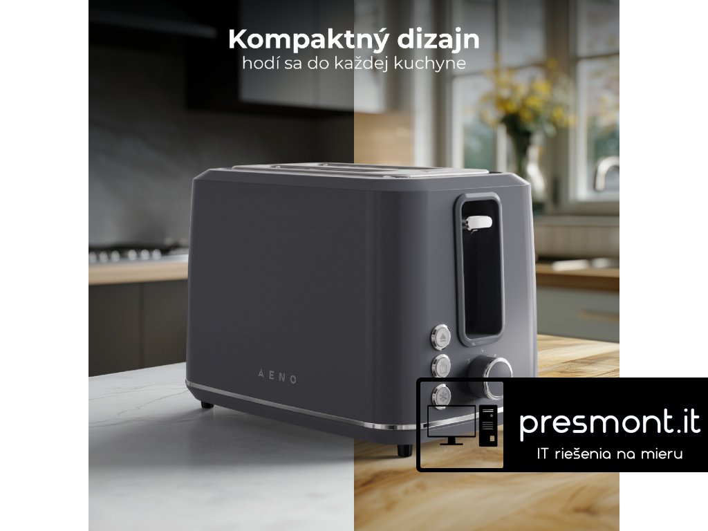 AENO 2-plátkový hriankovač TS1, 1000W, 7 stupnov opekania, extra výsun, šedý