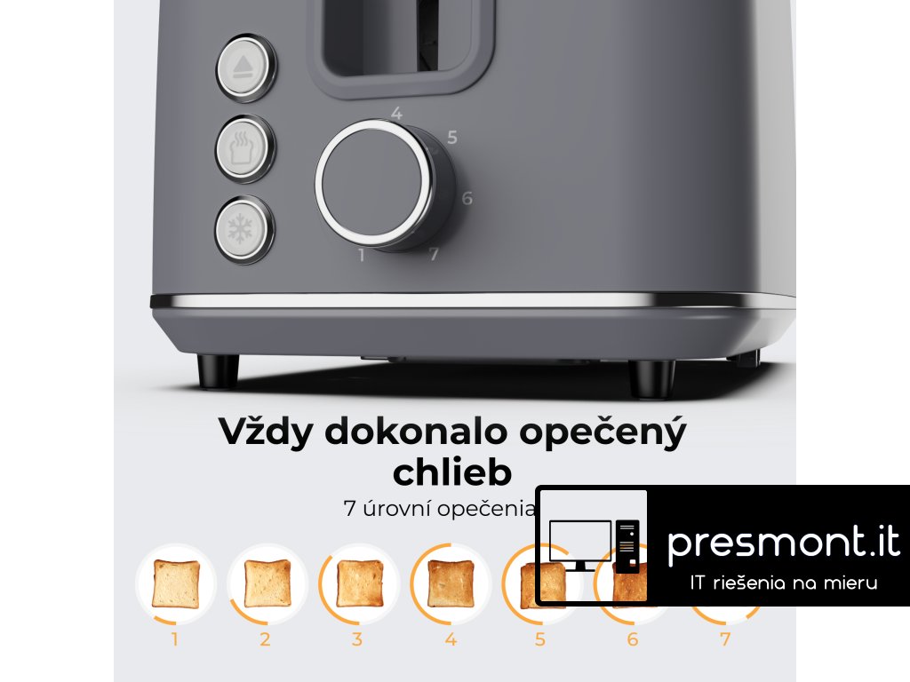 Disponuje elektronickým časovačom s 7 stupňami nastavenia intenzity opečenia, umožňujúcim vám prispôsobiť si opečenie toastov podľa vašich preferencií.