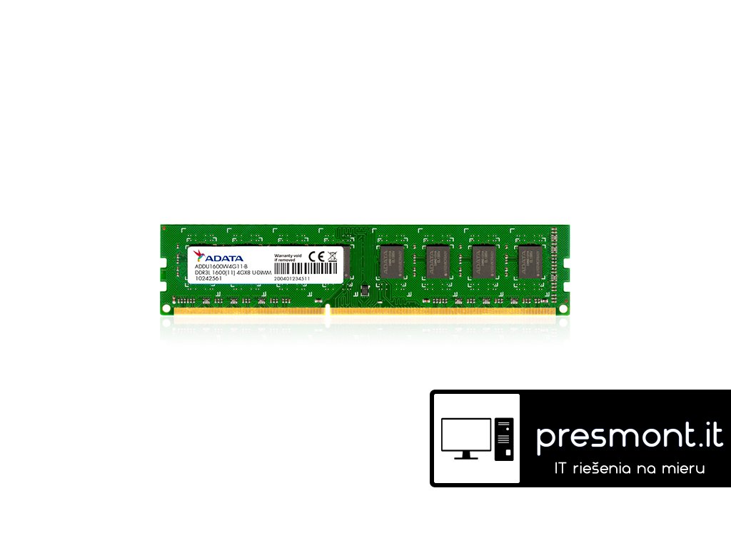 Adata DDR3L 1600 U-DIMM - paměťový modul Typ paměti: DDR3 Form Factor: U-DIMM Kapacita paměti: 8GB Počet modulů v balení: 1x 8GB Rychlost: 1600MT/s Časování: CL11 Napětí: 1,35V Provozní teplota: 0°C až 85°CDodatočné parametre