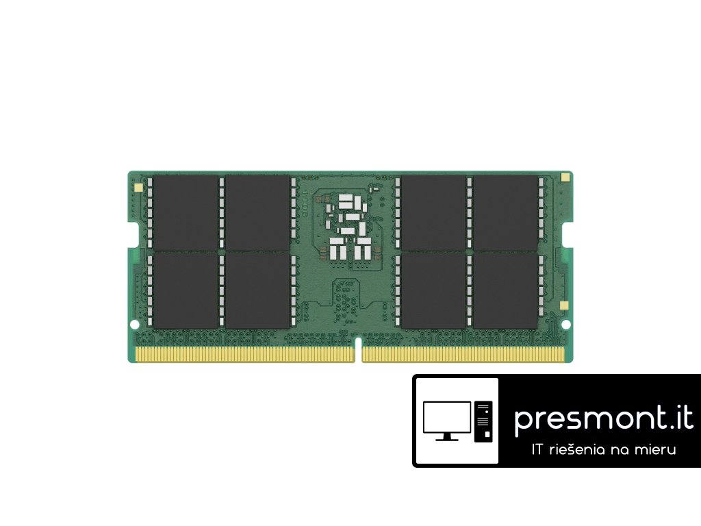 32GB 2Rx8 4G x 64-Bit PC5-6400 CL52 262-Pin CSODIMM Paměťový modul KVR64V52BD8-32 modelové řady ValueRAM společnosti Kingston, který je založen na čtyřech 1G x 16bitových komponentách FBGA a jednom taktovacím ovladači (CKD) DDR5-6400 CL52 Clocked Small Outline DIMMs (CSODIMMs), 2Rx8. SPD je naprogramován podle časování DDR5-6400 standardu JEDEC s latencí 52-52-52 při napětí 1,1 V. Každý 262pinový CSODIMM používá zlaté kontaktní prsty. Elektrické a mechanické specifikace viz PDF. Pro kompatibilitu můžete navštívit https://www.kingston.com/en/configurator.Dodatočné parametre