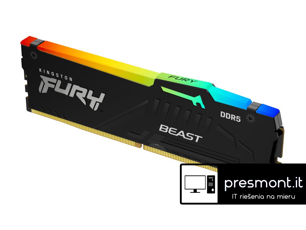 Paměť Kingston FURY™ Beast DDR5 nabízí vynikající rychlost, kapacitu a spolehlivost pro herní platformy nové generace. Zvedni výkon svého počítače díky vylepšeným funkcím, jako je On-die ECC, které zlepšují stabilitu, a dvěma 32bitovým podkanálům pro zvýšení účinnosti. Kingston FURY Beast DDR5 nabízí specifikace přetaktování pro Intel® XMP 3.0 a AMD EXPO™ s přizpůsobitelnými profily pro rychlosti a časování, které ti umožní vytáhnout z herního prostředí maximum, živě vysílat v rozlišení 4K+ a zrychlit projekty animací a 3D renderování. * Certifikace Intel® XMP 3.0 * Certifikace AMD EXPO * Vylepšená stabilita pro přetaktování. Funkce On-die ECC (ODECC) pomáhá zachovat celistvost dat tak, aby udržela konečný výkon zatímco vy posunujete své limity. * Nízkoprofilový chladič * Patentovaná Kingston FURY Infrared Sync Technology™ * Vylepšené RGB svícení Velikost: 133.35mm x 34.9mm x 6.62mm Hmotnost modulu: 33g Napětí:1,25VDodatočné parametre