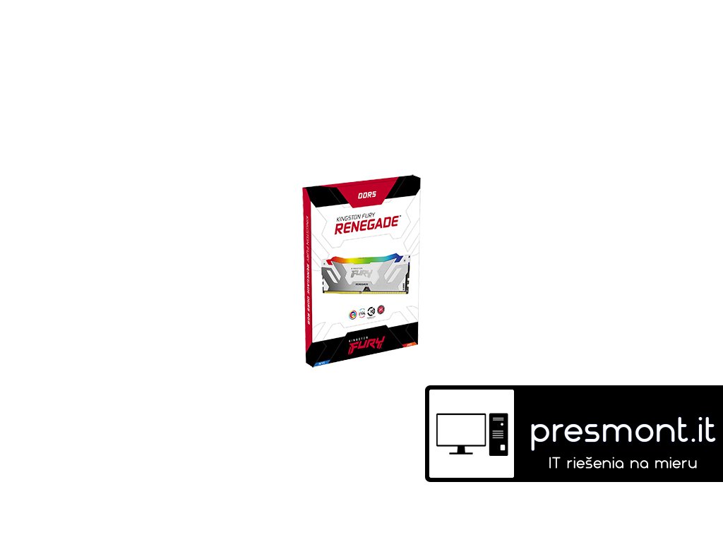 Kingston FURY™ Renegade RGB 16GB DDR5-6400 CL32 288-pin DIMM certifikace Intel® XMP 3.0 Typ paměti: DDR5 Kapacita paměti: 16GB Počet modulů v balení: 1x 16GB Rychlost: 6400MT/s Časování: CL32 Podsvícení: RGB Napětí: 1,4V Provozní teplota: 0 až 85°C Rozměry: 133,35x44x7,66mmDodatočné parametre