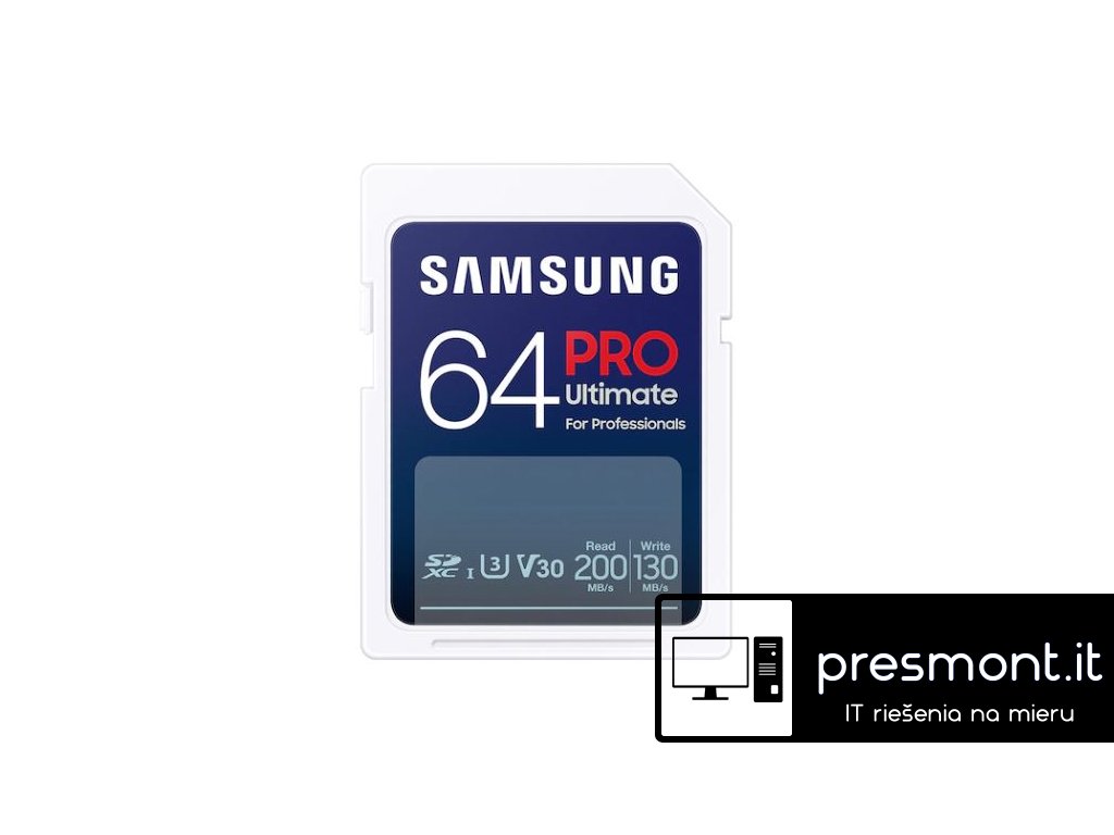 64 GB . SDXC karta Samsung PRO ULTIMATE Class 10 (U3 V30), ( r200NB/s, w130MB/s)