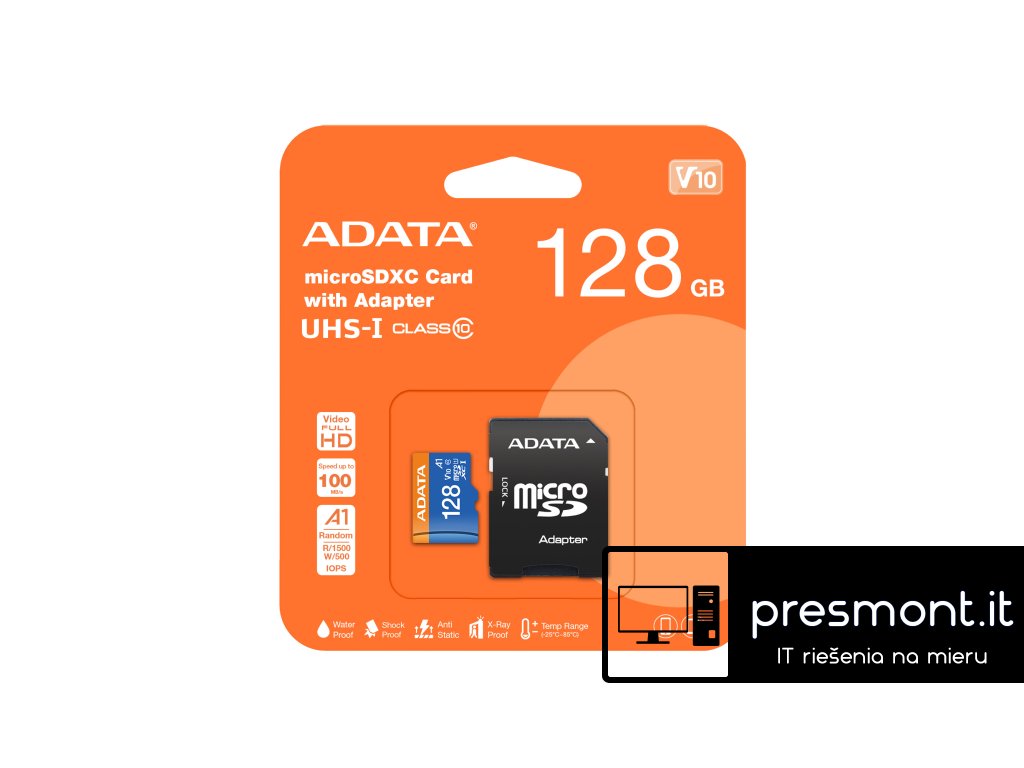 Paměťové karty MicroSDXC/SDHC UHS-I třídy 10 poskytují rychlost čtení až 100 MB za sekundu pro rychlý přenos souborů. Paměťové karty Premier microSDXC/SDHC UHS-I s výkonnostní třídou 10 umožňují nepřerušovaný a vysoce kvalitní záznam videa ve Full HD na chytrých telefonech a tabletech. Splňuje také standard A1 pro rychlejší a plynulejší spouštění aplikací. Vzhledem k tomu, že splňují normu V10 (Video Speed Class), mohou zaznamenávat až 10 MB videa za sekundu. Paměťové karty Premier microSDXC/SDHC UHS-I, které jsou k dispozici v kapacitách od 16 GB do 512 GB a jsou podpořeny spolehlivou vícebodovou ochranou, umožňují nadšencům do mobilních zařízení snadno nahrávat a sdílet nádherné vzpomínky! Rychlost čtení: až 100 MB/s Rychlost zápisu: až 25 MB/s Třída rychlosti: Class 10 UHS-I V10 A1 Robustní odolnost: vodotěsnost, nárazuvzdornost, antistatičnost, odolnost proti rentgenovému záření a široká teplotní podpora (- 25 °C až 85 °C). Záruka: 120 měsíců (V ATC, u Adaty doživotní)Dodatočné parametre