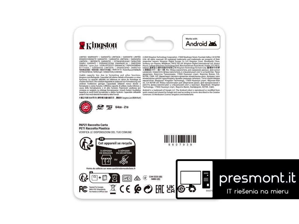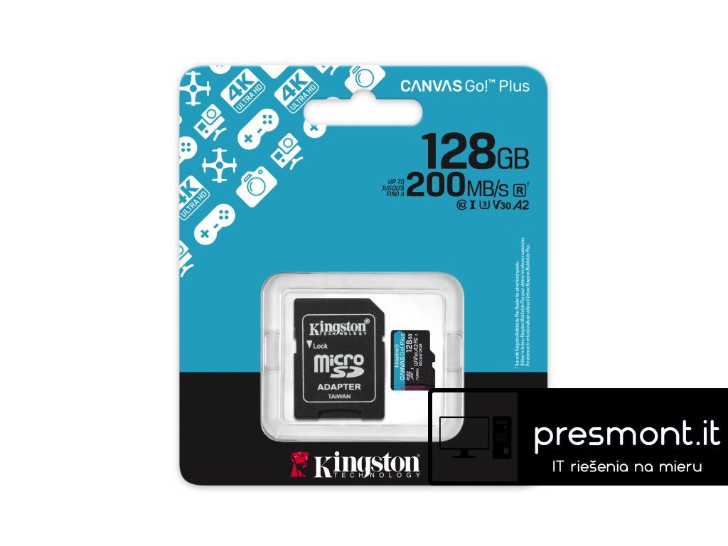 Paměťová microSD karta Canvas Go! Plus od společnosti Kingston je určena pro dobrodruhy a mobilní hráče, kteří vyžadují vysoký výkon na cestách. Díky bleskové přenosové rychlosti až 200 MB/s** zefektivní váš pracovní postup a umožní vám věnovat více času snímání a tvorbě. Rychlostní třídy U3 a V30 jsou optimalizovány pro akční kamery a drony a umožňují plynulé a nepřerušované nahrávání úžasných videí v rozlišení 4K Ultra-HD, a to i v rychlých scénách. Ať už dokumentujete extrémní sporty nebo pořizujete dechberoucí letecké záběry, Canvas Go! Plus poskytuje spolehlivý výkon bez prodlev. Pro milovníky mobilních her je výkonnostní třída aplikací A2 zárukou rychlejšího načítání aplikací a bezproblémového hraní na chytrých telefonech a tabletech. Rozlučte se s frustrujícími prodlevami a přivítejte lepší herní zážitek, ať jste kdekoli. Díky volitelnému SD adaptéru je karta Canvas Go! Plus ještě univerzálnější a je kompatibilní s celou řadou zařízení, která podporují SD karty. ** Na základě interního zkušebního výkonu, může se lišit v závislosti na hostitelském zařízení. Vyrobeno pomocí patentované technologie umožňující dosažení rychlosti čtení, která přesahuje specifikaci UHS-I 104 MB/s, a to až do 200 MB/s. Plný výkon vyžaduje čtečku MobileLite Plus Reader. Rychlostní třída: Třída 10, UHS-I, U3, V30, A2 Rychlost čtení: až 200 MB/s Formát: exFAT Provozní teplota: -25 až 85 °C Skladovací teplota: -40 až 85 °C Napětí: 3,3 V Rozměry: (microSDXC Card) 11 x 15 x 1 mm (SD adaptér) 24 x 32 x 2,1 mmDodatočné parametre