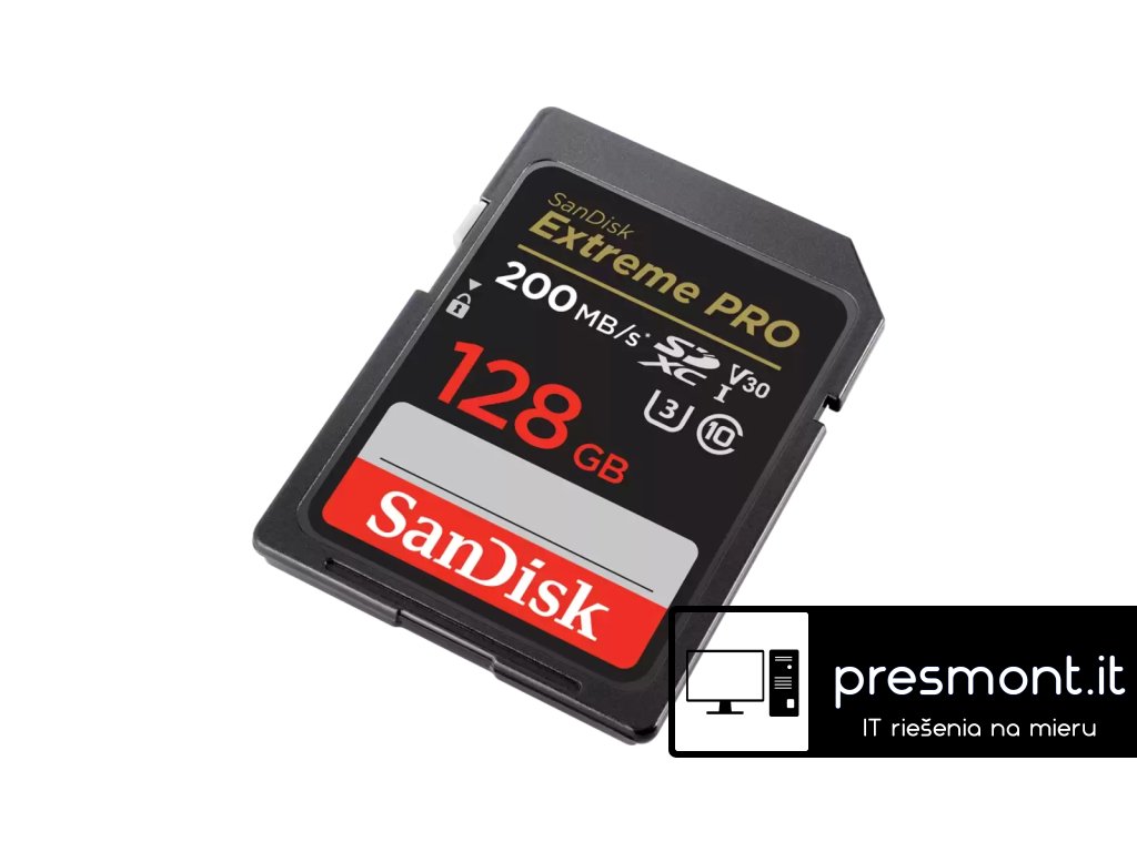 Paměťová karta SanDisk Extreme PRO SDXC UHS-I Kapacita: 128 GB Kompatibilita: Kompatibilní s hostitelskými zařízeními, která podporují formáty SDXC a SDXC UHS-I Rozměry: 2.17mm x 23.91mm x 31.92mm Rychlost sekvenčního čtení: až 200 MB/s Rychlost sekvenčního zápisu: až 90 MB/sDodatočné parametre