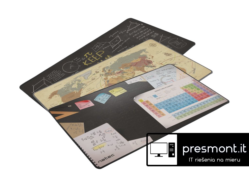 PODLOŽKA NEJEN PRO MYŠ Malé počítačové podložky pod myš mohou být otravné - zakřivené rohy, roztřepené hrany, atd. To je již minulost! Natec MATHS je unikátní podložka pod myš o maxi rozměrech 800x400 mm, na kterou se vejde nejen myš, ale i klávesnici, nebo notebook. Díky Maxi rozměrům chrání pracovní stůl před poškozením a její vysoce-kvalitní povrch a zpracování zvyšuje přesnost pohybů myši a snižuje tření mezi myší a povrchem, co ulehčuje pohyb. UNIKÁTNÍ A PRAKTICKÁ GRAFIKA Nejlepší vlastností podložky Natec MATHS je její unikátní potisk nejpoužívanějších matematických vzorců, které mohou být užitečné nejen během studia, ale i při každodenním používání. Díky tomu podložka nejen usnadňuje pohyb myši, ale také pomáhá při práci, studiu, nebo zábavě. Navíc vkusná grafika děla podložku zajímavým doplňkem na vašem pracovním stolu. VYSOCE-KVALITNÍ POVRCH A ZPRACOVÁNÍ Vrchní vrstva podložky je vyrobená z nepromokavé tkaniny, která zajišťuje vysokou přesnost pohybů myši a snižuje tření mezi myší a povrchem, co ulehčuje pohyb. Speciální impregnace dělá že rozlitá kapalina zůstane na povrchu podložky a zabrání její absorpci do vnitřní vrstvy, co ulehčuje udržet podložku v čistotě. Podložka je na spodní straně vybavena protiskluzovou gumovou vrstvou, která zabraňuje její přesouvání. Obšití okrajů podložky zajišťuje její vysokou odolnost a zamezuje třepení okrajů při intenzivním používání. UNIVERZÁLNÍ Podložka bezproblémově spolupracuje ze všemi myší, bez ohledu na typ sensoru. MAXI ROZMĚRY Díky svým neobvyklým rozměrům 400 × 800 mm, podložka přikrývá převážnou část stolu, díky čemu se na ni vejdou nejen myš, ale také klávesnice. KOMFORTNÍ Nízký profil podložky 2,5 mm vám pomůže získat jedinečný pocit pohodlí během její používání. SPECIFIKACE Povrchový materiál: Tkanina Profil: Nízký Druh povrchu: Speed Rozměry (mm): 400 x 800 Další funkce: protiskluzová spodní vrstva, voděodolná vrchní vrstvaDodatočné parametre