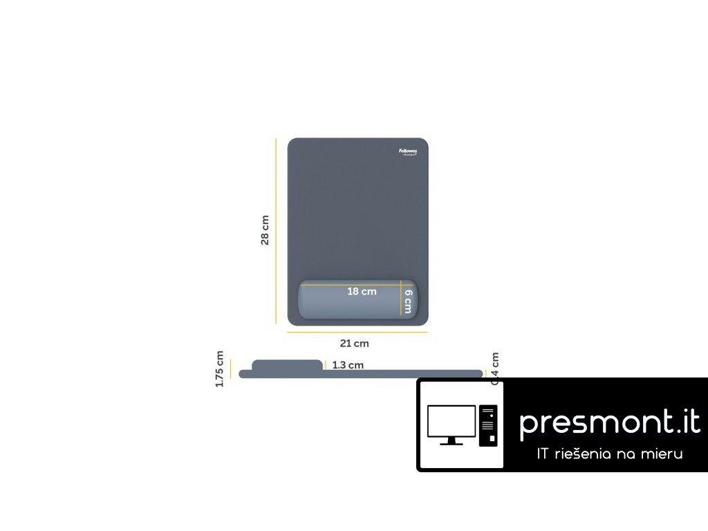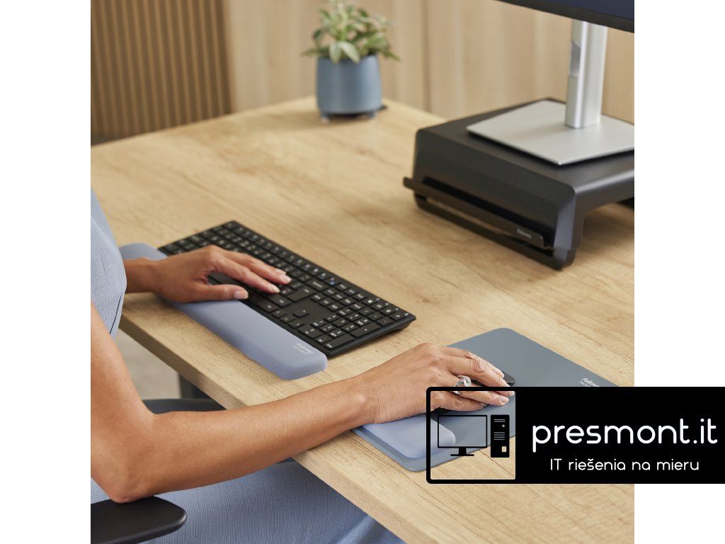 Podložka pod myš Fellowes Breyta™ XL s opěrkou zápěstí zajišťuje pohodlnou a ergonomickou práci u počítače. Používáním podložky pod myš a zápěstí Fellowes BREYTA předcházíte bolesti zapěstí. Zvětšená velikost podložky poskytuje více prostoru pro pohyb myši a integrovaná opěrka zápěstí pomáhá snižovat zatížení a únavu při dlouhodobé práci. Povrch podložky je příjemný na dotek a snadno se čistí. Antibakteriální ochrana Microban® pomáhá předcházet množení bakterií a přispívá k hygieničtějšímu pracovnímu prostředí. Podložka zajišťuje plynulý a přesný pohyb myši a zároveň chrání povrch stolu. • silikonová podložka pod zápěstí kombinuje rovnoměrnou podporu s výjimečným komfortem při práci s myší • vyrobeno ze 74 % z recyklovaných materiálů a je 100% recyklovatelná • o 23 % větší než standardní podložka, což umožňuje volnější pohyb myši • povrch Soft-touch s anti-prachovou úpravou pro plynulý pohyb myši • podložka výborně drží na povrchu desky stolu, neposouvá se • kompatibilní s optickými i laserovými myšmi • chrání povrch stolu Podložka pod myš Fellowes Breyta™ XL je skvělou volbou pro domácnost i kancelář a pomáhá vytvořit pohodlné, čisté a dobře organizované pracovní prostředí. PARAMETRY: • Materiál výplně: silikon • Vnější materiál: textilie • Antimikrobiální úprava: ano • Barva: modrá • Rozměry (Š x V x H): 210mm x 280mm x 18mm • Hmotnost: 0.25 kgDodatočné parametre