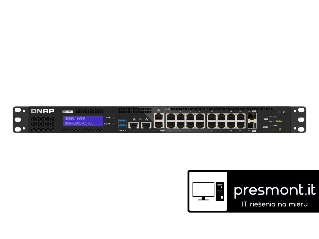 QNAP riadený hybridný switch QGD-1602-C3558-8G (8x GbE + 8x 2,5 GbE + 2x 10GbE SFP+, 8GB RAM)