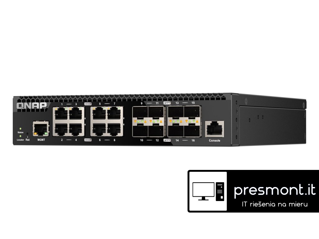 QNAP riadený switch QSW-M3216R-8S8T (8x 10GbE porty + 8x 10G SFP+ porty, polovičná šírka)