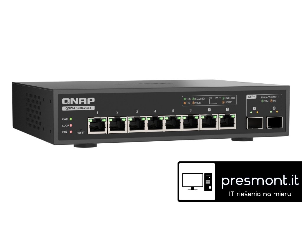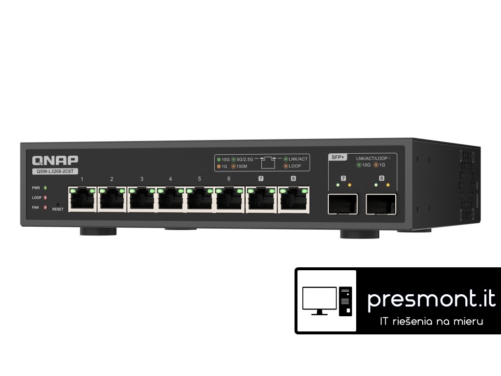 QNAP switch QSW-L3208-2C6T (6x 10GbE port, 2x 10G SFP+/NBASE-T Combo, Lite Managed)