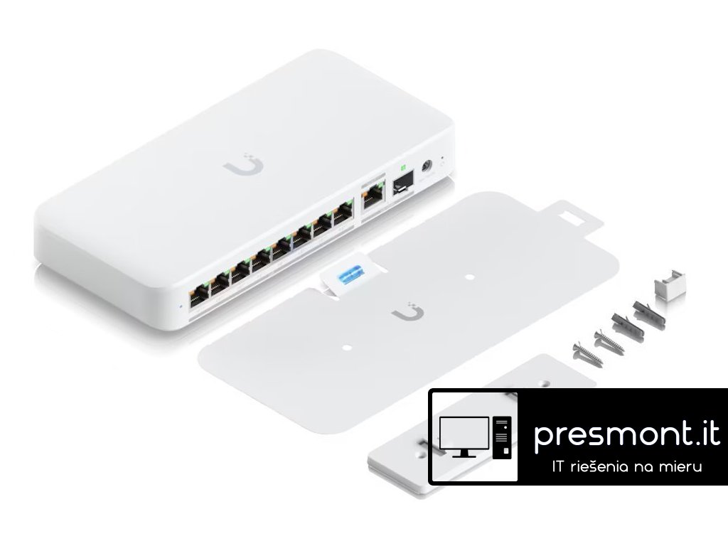 Ubiquiti UniFi Switch Flex Mini 2.5G 8 PoE Flexibilní switch nabízející osm 2,5 GbE RJ-45 PoE++ portů a jeden kombinovaný 10G RJ-45/SFP+ pro uplink Klíčové vlastnosti *switch nabízející osm 2,5 GbE RJ-45 PoE++ portů a jeden kombinovaný 10G RJ-45/SFP+ pro uplink *L2 switch s celkovou kapacitou 60 Gbps, rychlostí směrování 44,64 Mpps a PoE budgetem až 196 W *switch lze napájet buď přes DC konektor, nebo pomocí PoE+++ *možnost montáže na stěnu (součástí balení) nebo na DIN lištu (není součástí) ZÁKLADNÍ SPECIFIKACE Porty: 8× 2,5 GbE RJ-45 PoE++, 1× 10G combo RJ-45 PoE+++/SFP+ Kapacita switche: 60 Gbps (30 Gbps neblokovaně) Rychlost směrování: 44,64 Mpps Podpora PoE: ano (802.3af/at/bt, 196 W PoE budget) Napájení: AC/DC vstup 54 V DC (DC jack), nebo PoE vstup 50—57 V DC Rozměry: 212,9 × 99,4 × 33,5 mm Hmotnost: 567 g Max. spotřeba energie: 14W Tlačítko obnovení továrního nastavení: ano Možnosti napájení: PoE+ vstup: 12 W PoE++ vstup: 37 W PoE+++ vstup: 57 W 210W AC adaptér: 196 W (adaptér není součástí balení)Dodatočné parametre