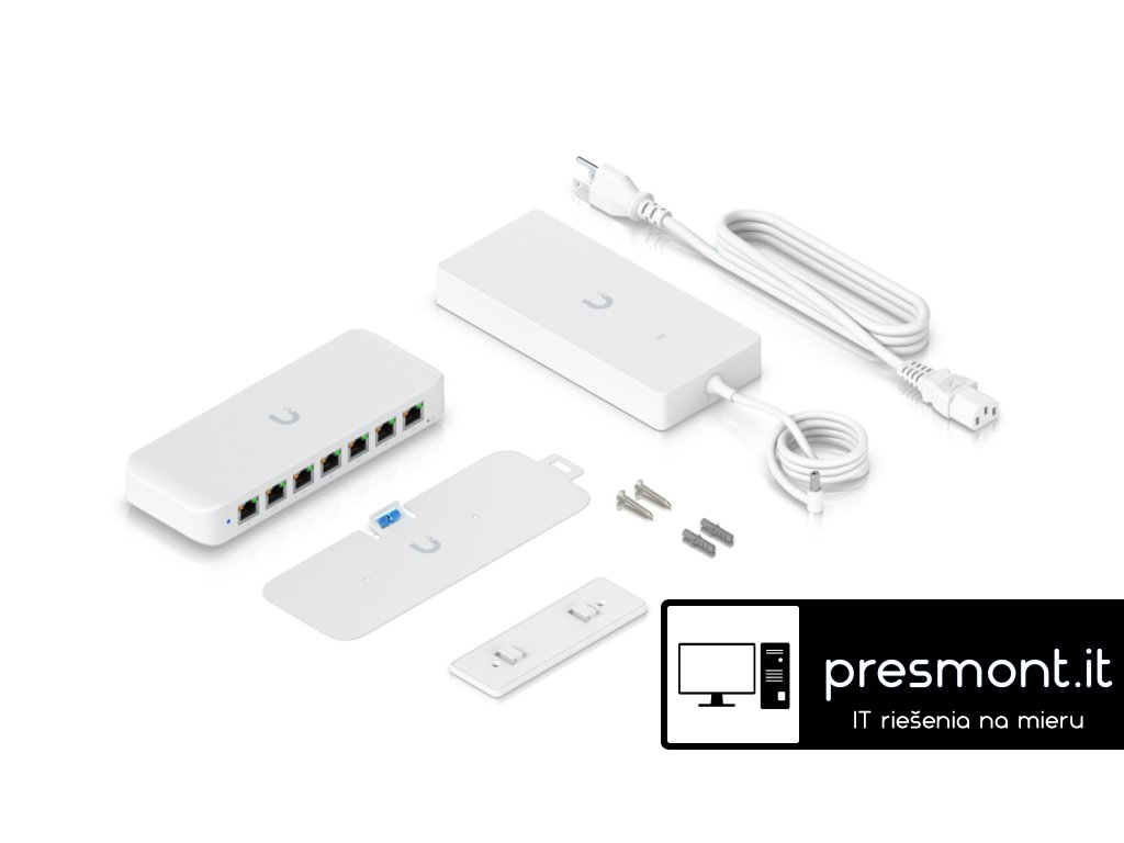 UniFi Switch Ultra 210W kompaktní 8portový GbE PoE switch * maximální PoE budget switche 202W (při napájení DC adaptérem) * 1x PoE In a 7x PoE Out s podporou PoE napájení 802.3af/at s maximálním zatížením až 30W na port Technické parametry Rozhraní pro správu: Ethernet In-Band Síťové rozhraní: 8x GbE RJ45 PoE rozhraní: * 7x PoE/PoE+ (piny 1, 2+, 3, 6-) * 1x PoE++ (pár A 1, 2+, 3, 6-) (pár B 4, 5+, 7, 8-) Celková neblokující propustnost: 8Gb/s Kapacita switche: 16Gb/s Způsob napájení: * 54V/3,9A napájecí adaptér (součást balení) * PoE++ (piny 1, 2+, 3, 6- a 4, 5+, 7, 8-) Zdroj napájení: 54V, externí, 3,9A/210W Podporovaný rozsah napětí: 44-57V DC Max. spotřeba energie: * 9W se vstupem PoE (bez PoE výstupu) * 8W se vstupem AC adaptéru (bez PoE výstupu) Max. PoE+ výkon na port: 30W Provozní teplota: -20 až 60°C Rozměry: 203x76x33mm Hmotnost * zařízení: 320g * držák: 45g * 210W adaptér: 770g Obsah balení: * switch * napájecí adaptér 54V/3,9A * montážní sadaDodatočné parametre