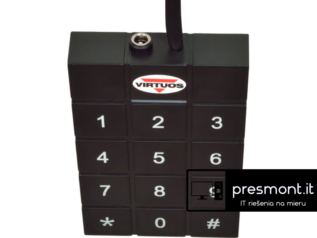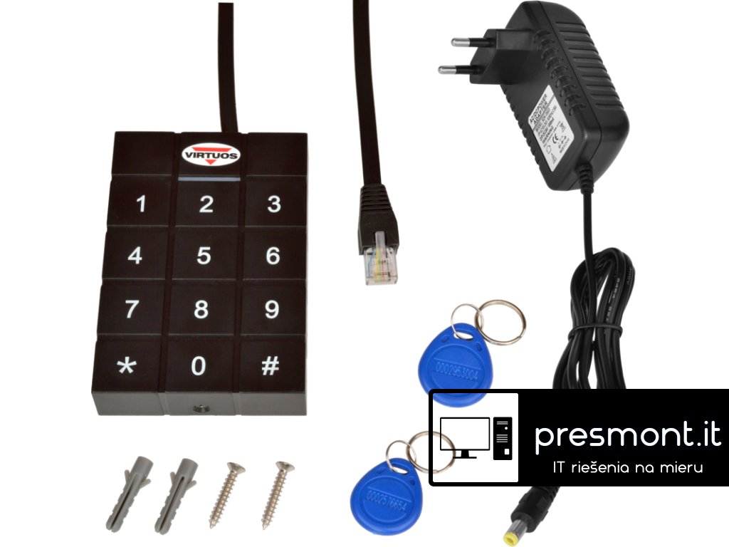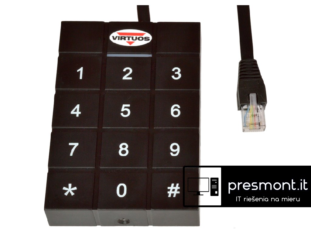 RFID 125 kHz adaptér Virtuos® je určen k otvírání pokladních zásuvek Virtuos pomocí RFID karet nebo zadáním PIN na klávesnici bez nutnosti použití pokladního systému. Adaptér dále může hlídat nezavřenou zásuvku a upozornit na tuto skutečnost spuštěním alarmu. Součástí dodávky je 24V napájecí zdroj s kontrolní svítící diodou. Dostatečně dlouhý 2 m připojovací kabel adaptéru je zakončen konektorem RJ50-10p10c přímo pro pokladní zásuvky Virtuos, tzn. že není třeba žádný další kabel. K pokladním zásuvkám 24V s napevno instalovaným propojovacím kabelem (např. S-410) lze adaptér připojit prostřednictvím spojky GJB1029 (není součástí). Ovladač má robustní antivandal konstrukci s možností přišroubování např. na zeď nebo pracovní desku. Adaptér je dodávaný s napájecím zdrojem, dvěma RFID čipy a montážním příslušenstvím. Další RFID čipy je možno doplnit - EUA9008. Základní parametry *Kompaktní jednoduché provedení *Ovládání pokladní zásuvky pomocí RFID karty nebo zadáním čtyřčíselného PIN kódu na klávesnici *Otvírání 24 V zásuvek *Možnost hlídání nezavřené zásuvky s alarmem *Napájení přídavným adaptérem (je součástí) *Vodotěsné provedení IP65 *Antivandal provedení *Programování pomocí klávesnice *2000 přístupových kódů nebo karet *Možnost zvýšené bezpečnosti PIN + karta *Wiegand 26 vstup pro další čtečku a výstup pro načítání kódů externím kontrolérem *Nízká spotřeba v klidovém stavu pouze 30 mA *Rychlá odezva < 20 ms *Integrovaný reproduktor *Červená, oranžová a zelená LED indikační dioda Balení obsahuje: *RFID adaptér s klávesnicí včetně připojovacího kabelu k pokladní zásuvce (cca 2 m) *Napájecí zdroj 24V s kontrolní svítící diodou *2 x RFID čip *2 x šroub + 2 x hmoždinka *Základní instalační příručka Specifikace Typ RFID karet: RFID EM 125 kHz Vzdálenost čtení: Max. 5 cm Napájení: 24 V, 30 mA v klidu, 1 A max Rozměry: 75 (Š) × 114 (V) × 20 (H) mm Délka kabelu: Cca 2 m Hmotnost: 0,35 kg (bez zdroje a kabelu) Barva: Černá Připojení zásuvky: Konektorem RJ50-10p10c, 24V/1A, detekce stavu VIRTUOS® Rozhraní / čipset: 32 bits ARM CPU Pracovní prostředí: Pracovní teplota: -20 – 55 °C Skladovací teplota: -45 – 60 °C Relativní vlhkost: 10 – 90 %Dodatočné parametre