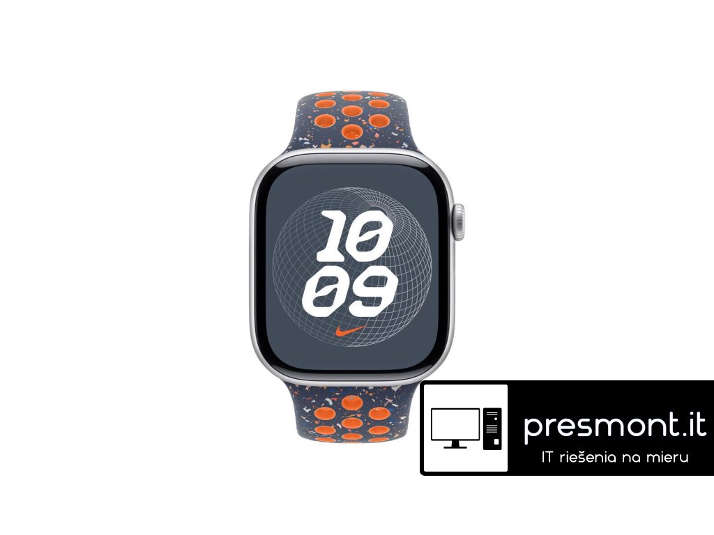 Apple 40mm sportovní řemínek Nike Tenhle sportovní řemínek Nike má vylisované otvory pro větší vzdušnost, je odolný, pevný a přitom krásně poddajný. Obsahuje barevné vločky vytvářející náhodné vzory, takže každý řemínek je originál. Jeho hladký, hutný materiál se elegantně ovine kolem zápěstí a příjemně sedí. A nově se zapíná na hliníkový kolíček s matným povrchem. Řemínek obsahuje minimálně 30 % recyklovaného fluoroelastomeru, přičemž obsah recyklovaného fluoroelastomeru v každé vločce je minimálně 66 %. V krabici Sportovní řemínek Nike k Apple Watch Technické specifikace Materiál: Fluoroelastomer Barva: Blue Flame Nike Velikost: S/M Kompatibilita - Modely Apple Watch * 38 mm * 40 mm * 41 mmDodatočné parametre