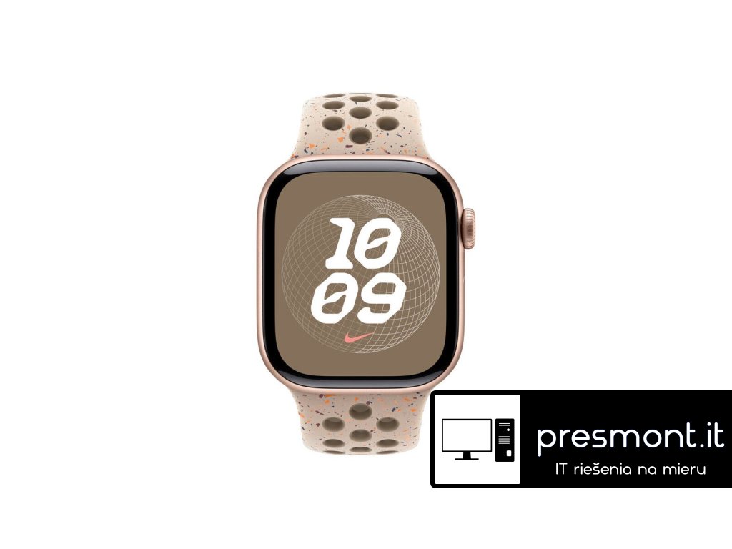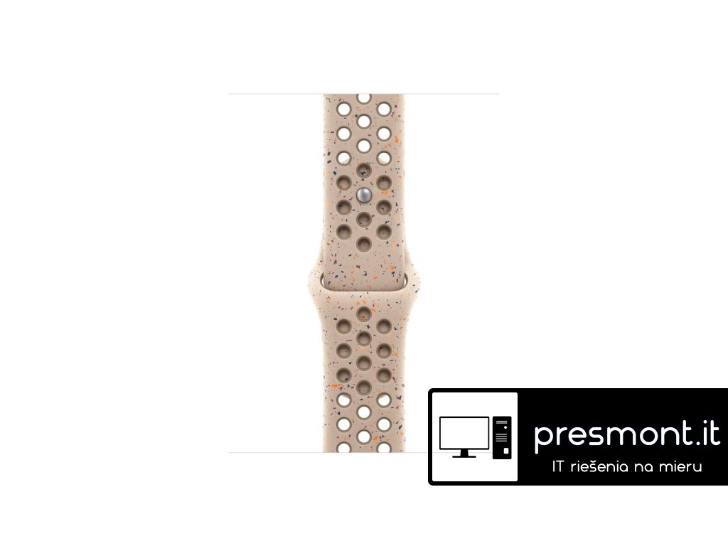 Apple 40mm sportovní řemínek Nike Tenhle sportovní řemínek Nike má vylisované otvory pro větší vzdušnost, je odolný, pevný a přitom krásně poddajný. Obsahuje barevné vločky vytvářející náhodné vzory, takže každý řemínek je originál. Jeho hladký, hutný materiál se elegantně ovine kolem zápěstí a příjemně sedí. A nově se zapíná na hliníkový kolíček s matným povrchem. Řemínek obsahuje minimálně 30 % recyklovaného fluoroelastomeru, přičemž obsah recyklovaného fluoroelastomeru v každé vločce je minimálně 66 %. V krabici Sportovní řemínek Nike k Apple Watch Technické specifikace Materiál: Fluoroelastomer Barva: Desert Stone Nike Velikost: S/M Kompatibilita - Modely Apple Watch * 38 mm * 40 mm * 41 mmDodatočné parametre