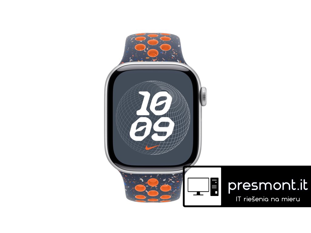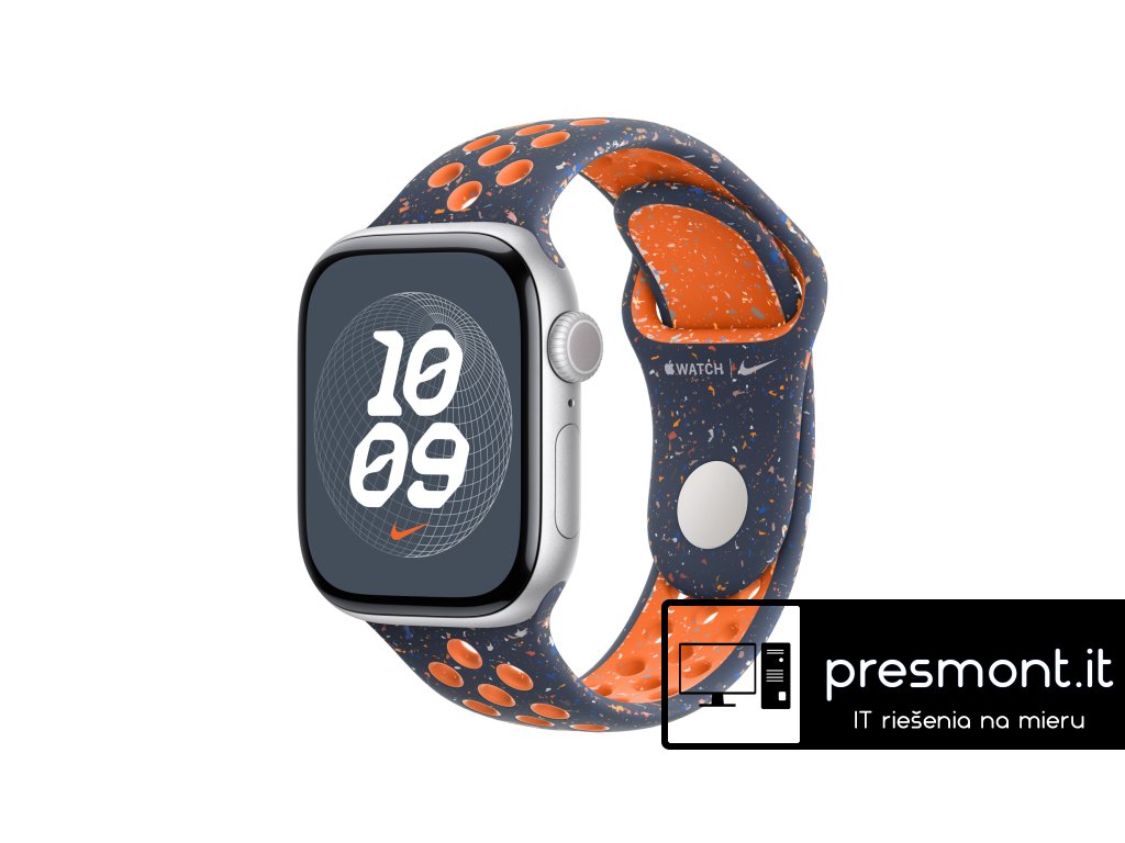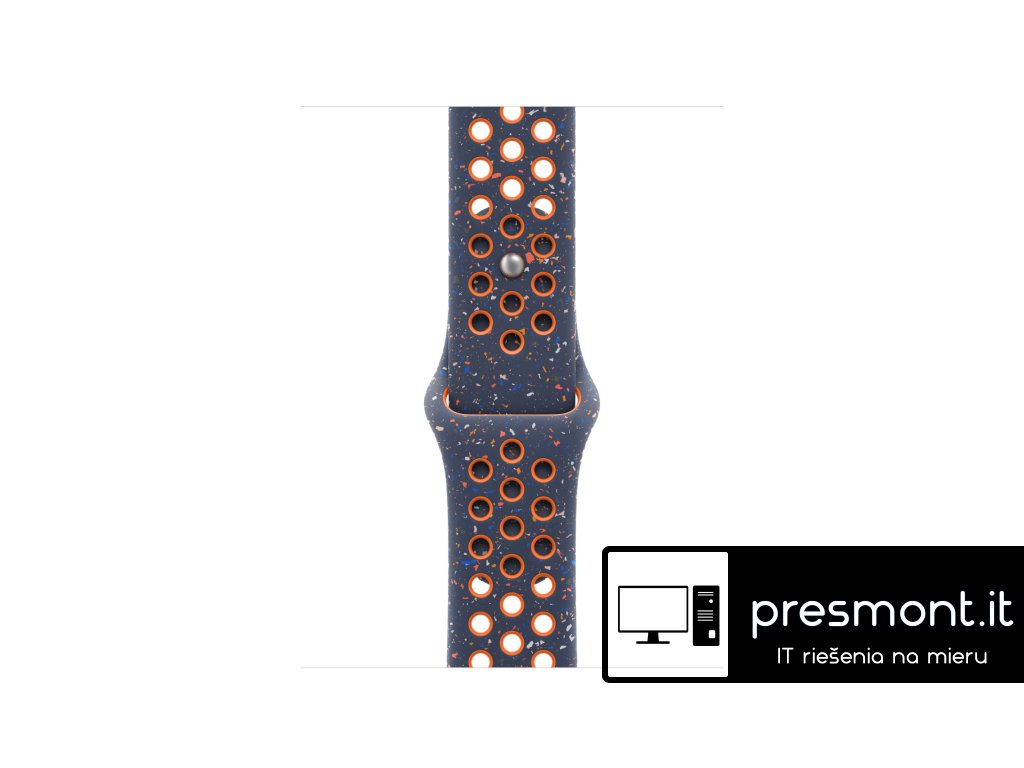 Apple 42mm sportovní řemínek Nike – S/M Tenhle sportovní řemínek Nike má vylisované otvory pro větší vzdušnost, je odolný, pevný a přitom krásně poddajný. Obsahuje barevné vločky vytvářející náhodné vzory, takže každý řemínek je originál. Jeho hladký, hutný materiál se elegantně ovine kolem zápěstí a příjemně sedí. A nově se zapíná na hliníkový kolíček s matným povrchem. Řemínek obsahuje minimálně 30 % recyklovaného fluoroelastomeru, přičemž obsah recyklovaného fluoroelastomeru v každé vločce je minimálně 66 %. V krabici Sportovní řemínek Apple Watch Nike Technické specifikace Materiál: Hliník, Minimálně 30 % recyklovaného fluoroelastomeru Barva: Blue Flame Nike Velikost řemínku: 130 - 180 mm Kompatibilita - Modely Apple Watch * 38 mm * 40 mm * 41 mm * 42 mmDodatočné parametre