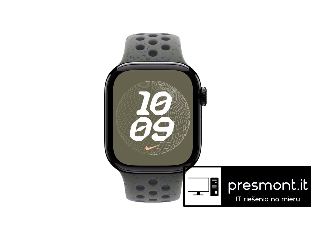 Apple 42mm sportovní řemínek Nike – S/M Tenhle sportovní řemínek Nike má vylisované otvory pro větší vzdušnost, je odolný, pevný a přitom krásně poddajný. Obsahuje barevné vločky vytvářející náhodné vzory, takže každý řemínek je originál. Jeho hladký, hutný materiál se elegantně ovine kolem zápěstí a příjemně sedí. A nově se zapíná na hliníkový kolíček s matným povrchem. Řemínek obsahuje minimálně 30 % recyklovaného fluoroelastomeru, přičemž obsah recyklovaného fluoroelastomeru v každé vločce je minimálně 66 %. V krabici Sportovní řemínek Apple Watch Nike Technické specifikace Materiál: Hliník, Minimálně 30 % recyklovaného fluoroelastomeru Barva: cargo khaki Nike Velikost řemínku: 130 - 180 mm Kompatibilita - Modely Apple Watch * 38 mm * 40 mm * 41 mm * 42 mmDodatočné parametre