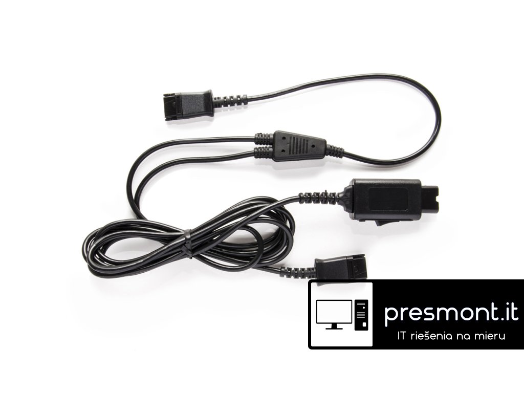 Tréninkový Y adaptér pro náhlavní soupravy s QD konektory. Tréninkový kabel obsahuje přepínač pro vypnutí mikrofonu Mute a umožňuje připojení dvou náhlavní souprav do jednoho stolního telefonu, což umožňuje monitorovat druhého uživatele a účastnit se hovorů. Obě sluchátka mohou poslouchat, ale pouze jeden mikrofon je ztlumen. Přepínač ovládá, který mikrofon je ztlumen. Je to nezbytná pomůcka pro školení, která zlepší efektivitu zpracování hovorů. Ideální pro školení prodejců a zaměstnanců call centra. Délkakabelu je 2 m.Dodatočné parametre