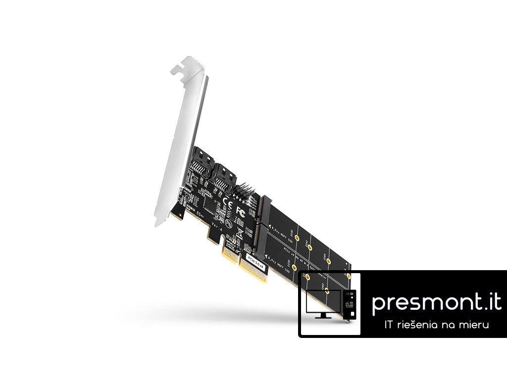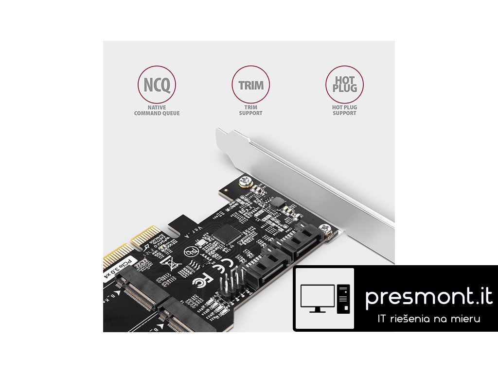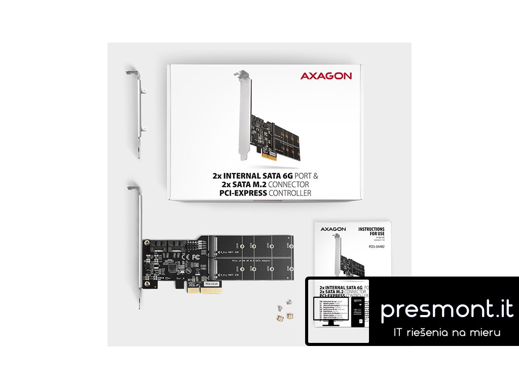 AXAGON PCES-SA4M2, PCIe radič - 2x interný SATA 6G port + 2x SATA M.2 slot, ASM1164, SP & LP