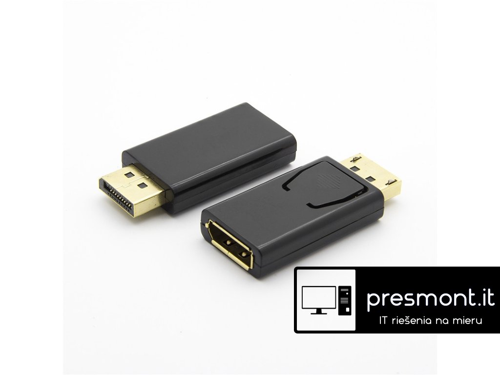 PremiumCord adaptér DisplayPort - HDMI, FULL HD 1080p Male/Female, pozlacené konektory PremiumCord adaptér DisplayPort - HDMI , redukce umožňující připojení HDMI monitoru do DisplayPort konektoru v počítači *Podporuje rozlišení FULL HD 1080p *Kompatibilní s Displayport 1.1a, až 1.62Gbps a 2.7Gbps přenosová rychlost dat *Podpora plného Displayport propojení. *Kompatibilní s HDMI 1.3,the max.transfer rate up to 2.25Gbps. *PC rozlišení: VGA,SVGA,XGA,SXGA a UXGA. *HDTV rozlišení: 480i,576i,480p,576p,1080i,1080p *Pozlacené konektory *Vstup: DisplayPort /Male (zdroj signálu) *Výstup: HDMI /Female *Podpora přenosu audia.Dodatočné parametre