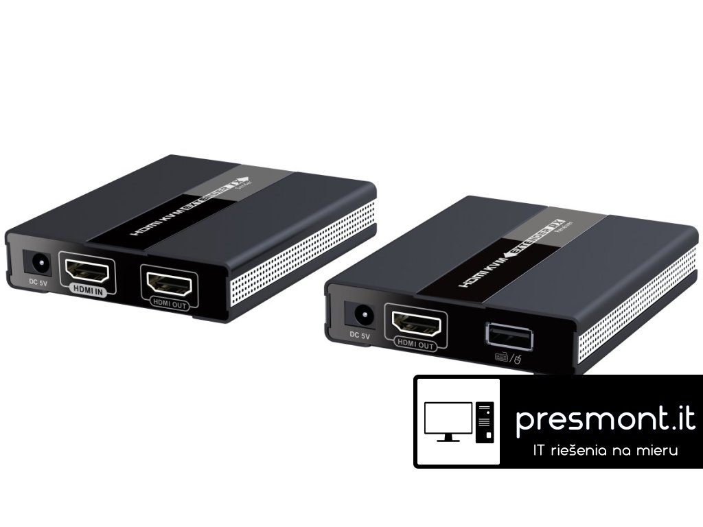 PremiumCord HDMI KVM extender s USB na 60m přes jeden kabel Cat5/6, bez zpoždění. Zařízení umožňuje po jednom síťovém kabelu bez zpoždění přenést HDMI FULL HD 1080p signál a USB až na vzdálenost 60m. Specifikace *KVM extender (keyboard, video and mouse) umožňuje přenést společně signál na větší vzdálenost a vzdáleně ovládat počítač nebo server. *Podporuje FULL HD 1080p až na 60m při použití kvalitního UTP kabelu CAT6 s měděnými vodiči AWG23 (doporučujeme náš kabel kód: sutpd6c3 ) *Doporučujeme pro propojení kvalitní UTP kabel Cat5e,Cat6,Cat7 s měděnými vodiči, nejlépe AWG23, nemusí být stíněný *Pro rozlišení:720x576@50Hz, 720x480@60Hz, 1280x720@60Hz, 1920x1080@60Hz, 640x480@60Hz, 800x600@60Hz, 1024x768@60Hz, 1280x800@60Hz, 1280x1024@60Hz, 1440x900@60Hz, 1680x1050@60Hz *Přenosvý datový tok: 10.2Gbps *Kompatibilní s HDMI 1.3 *Podporuje HDCP1.4 *Maximální dosah: 60m při použítí CAT6 kabelu AWG23 *Maximální dosah: 50m při použítí CAT5 kabelu AWG24 *Vstupní HDMI kabel max. 8m při použití HDMI kabelu s vodiči AWG24 *Výstupní HDMI kabel max. 8m při použití HDMI kabelu s vodiči AWG24 *Vysílač a přijímač se navzájem propojí kvalitním CAT6/CAT5e kabelem.Obě jednotky mají propojovací konektor RJ45 *Vysílač má jeden vstupní HDMI konektor a jeden lokální HDMI výstup. Přijímač má jeden HDMI výstup pro vzdálená monitor. *Extender přenáší také USB, vysílač má jeden USB pro zapojení do počítače,přijímač má dva USB konektory pro zapojení například myši a klávesnice *Vysílač a přijímač jsou napájeny z přiložených napájecích adaptérů 230V/5V, 2A, tento extender umožňuje napájení jen z jedné strany jedním adaptérem, jak je uvedeno na přiloženém obrázku *Rozměry vysílače: délka:91mm, šířka: 79mm, výška:18mm *Rozměry přijímače: délka:91mm, šířka: 79mm, výška:18mm *Váha: 210g + 210g *Pracovní teplota: 0-60°C V balení: *1x Jednotka vysílače *1x Jednotka přijímače *1x manuál *1x napájecí adaptér 5V/2ADodatočné parametre
