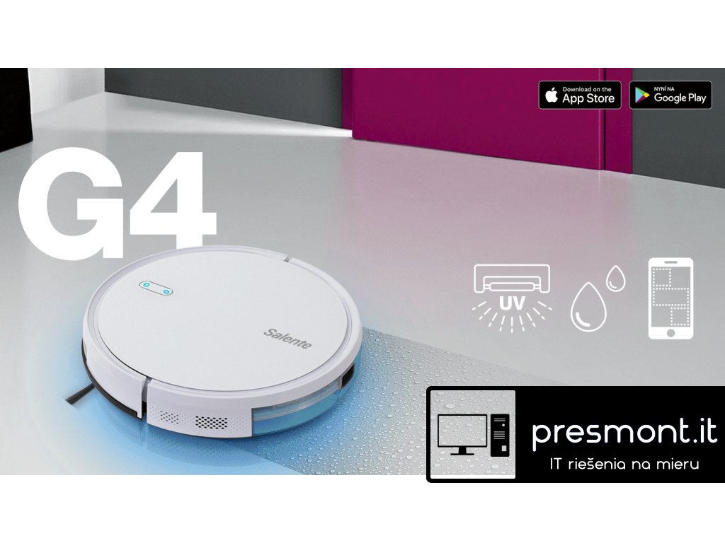 Salente G4 je schopen vaši podlahu vysávat, vytírat a desinfikovat pomocí vestavěné UVC lampy současně. Pomocí SMART gyroskopické navigace a snadné kontroly uklízeného prostoru pomocí mobilní aplikace v českém jazyce dokáže snadno, rychle a kvalitně uklidit váš členitý byt nebo dům a po ukončení úklidu se vrátit zpět do nabíjecí základny.SMART gyroskopická navigace