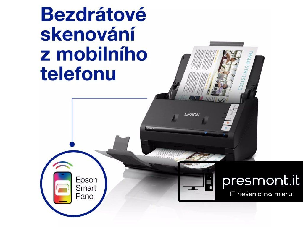 EPSON Workforce ES-530W Skener WorkForce ES-550W Technické paramtery: Technologie Typ skeneru: Skener s podavačem Optické rozlišení (ADF): 600 dpi x 600dpi Skenovací oblast: 215,9 x 6,096mm Max. velikost dokumentu ADF: 215,9 x 6,096mm Formáty papíru: A4, A5, A6, B5, B6 Letter, Legal, Pohlednice, Vizitky, Plastové karty Hloubka barev (vstup): 30 bitů barva / 8 bitů černobíle Hloubka barev (Výstup): 24 bitů barva / 8 bitů černobíle Skenovací objem: 5 000 stran za den Rozhraní: Wi-Fi direct, USB 3.2 Gen1x1, Bezdrátová síť LAN IEEE 802.11a/b/g/n/ac Skener Optický senzor: CIS (Kontaktní snímač obrazu) Zdroj světla: Technologie ReadyScan LED Výstupní rozlišení: 75, 100, 150, 200, 240, 300, 600, 1200 dpi Rychlost skenování Černobíle: 45 str./min. Barva: 45 str./min. Černobíle: 90 str./min. (při rozlišení 300 DPI) Barva: 90 str./min. (při rozlišení 300 DPI) Zpracování papíru/médií Kapacita papíru ADF: 100 listů Gramáž papíru ADF: Automatické podávání: 27 - 413g/m2 Duplexní skenování: Ano Funkce *Odstranění/vylepšení barev RGB *Pokročilá funkce odstranění/vylepšení barev *Přeskočení prázdných stran *Automatická korekce zkosení *Automatická detekce vícestránkových dokumentů *Vylepšení RGB barev *Automatická rotace obrazu *Vylepšení textu *Scan to Cloud Storage Obecné informace Napájení: ,AC 100 V - 240 V, 50 Hz - 60 Hz Spotřeba [W]: 13 Spotřeba ve stand by režimu [W]: 0,9 Rozměry (ŠxHxV): 296 x 169 x 176mm Hmotnost: 3,7kg Záruka: ,2 rokyDodatočné parametre