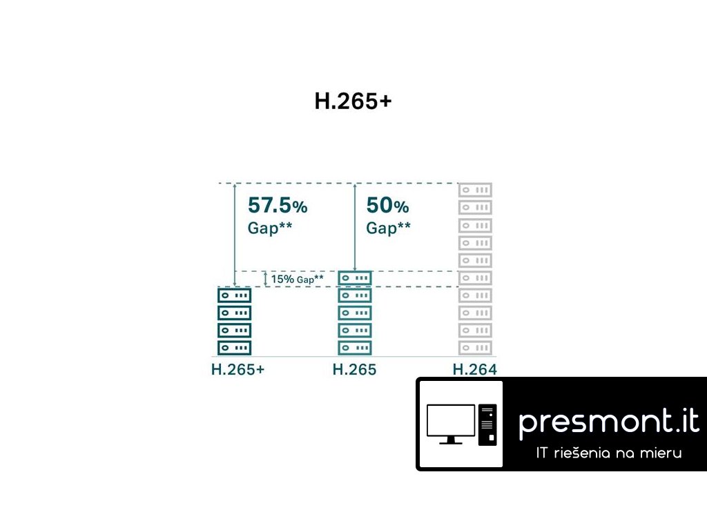 H.265+?: Komprimuje veľkosť videa bez obetovania kvality videa, znižuje zaťaženie siete a šetrí miesto na disku.