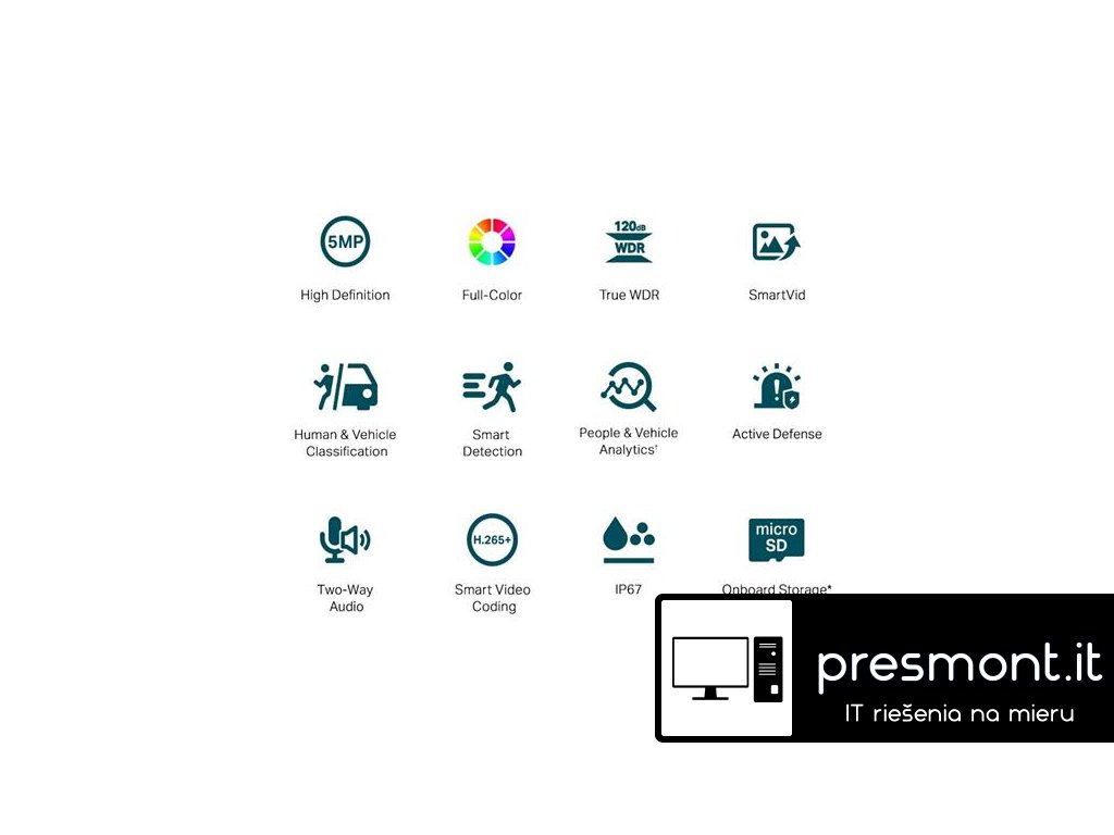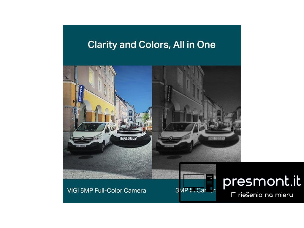 VIGI 5MP plnofarebná sieťová kamera Bullet5MP Super-High Definition: Fotoaparát je dodávaný s 5MP – viac než dostatočným počtom pixelov na zachytenie niektorých diskrétnejších detailov.