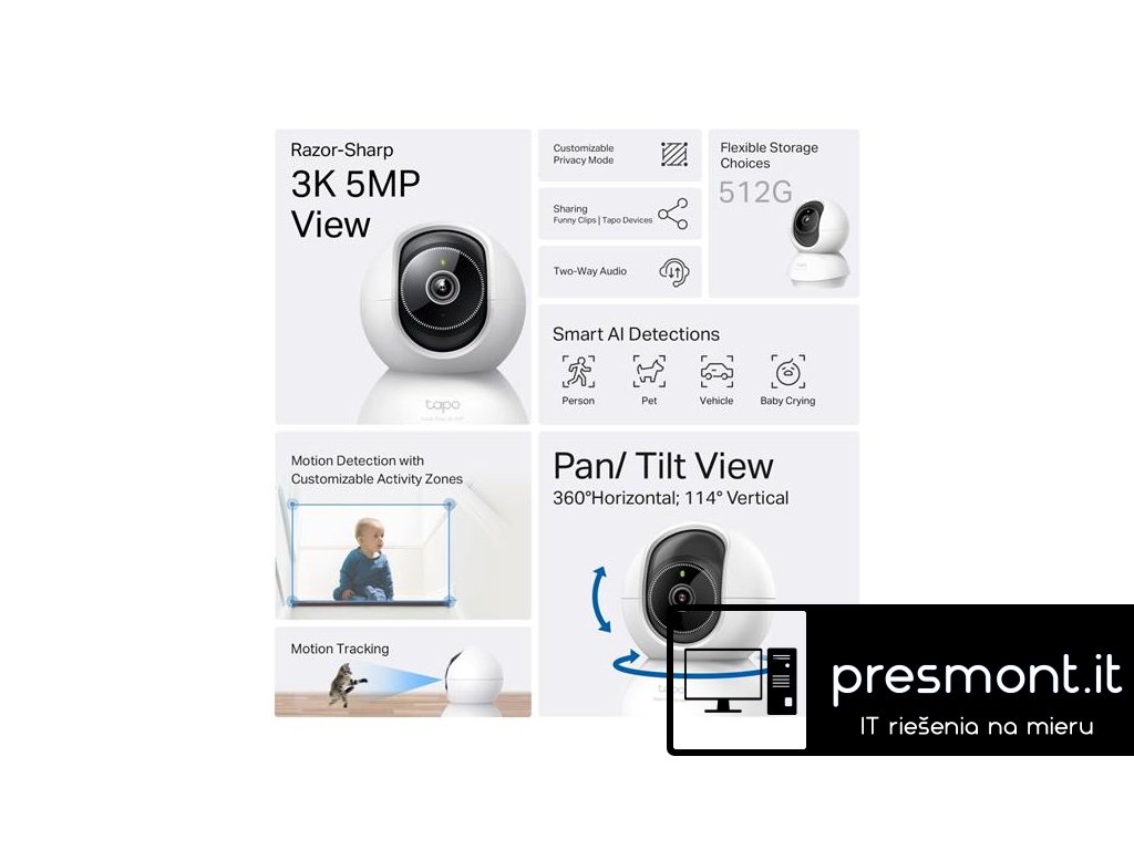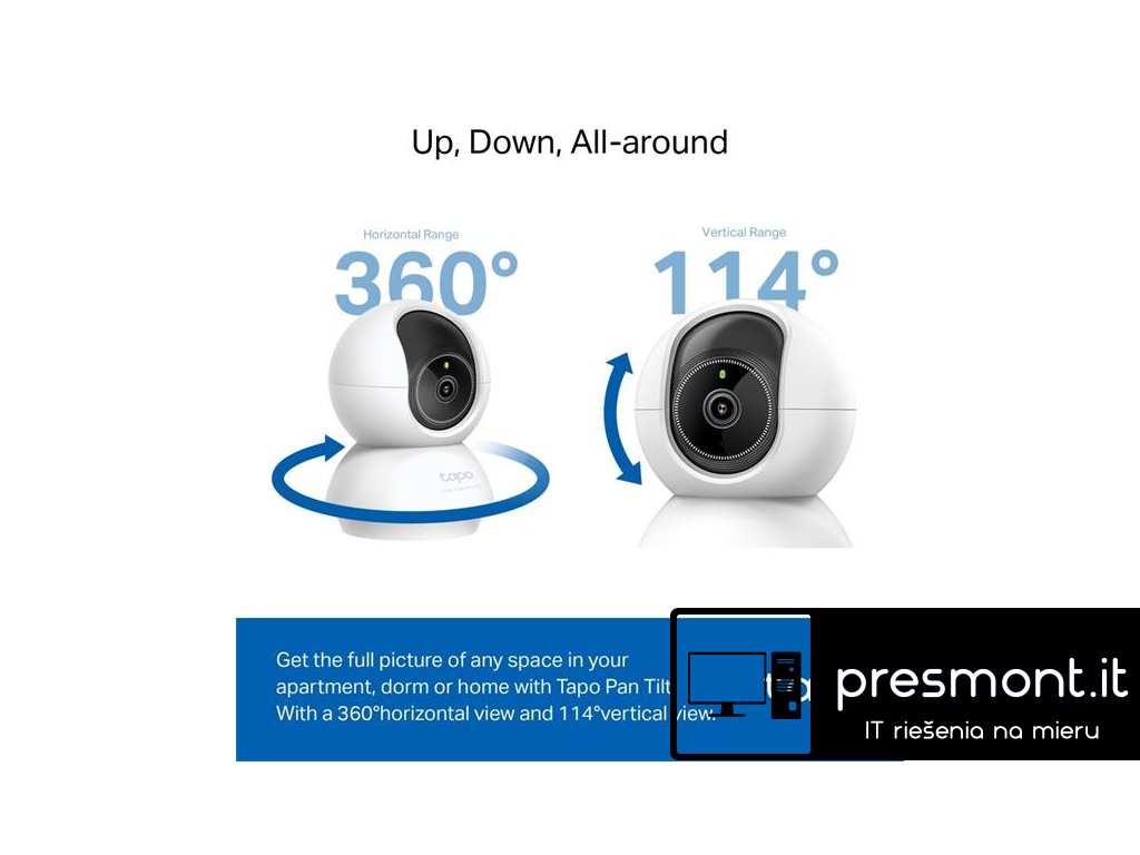 • Široký rozsah pohybu: Vychutnajte si plný horizontálny rozsah 360 ° a vertikálny rozsah 114 ° pre otáčanie a naklápanie, čo vám umožní pokryť väčšiu plochu.