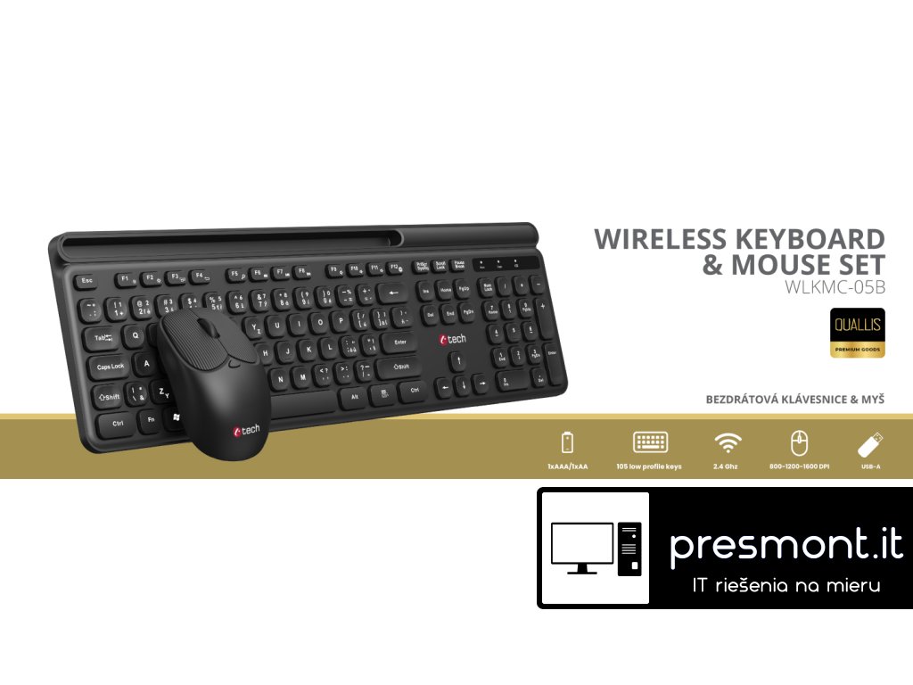 Klávesnice C-TECH Quallis WLKMC-05, bezdrátový combo set s myší, černý, USB, CZ/SK