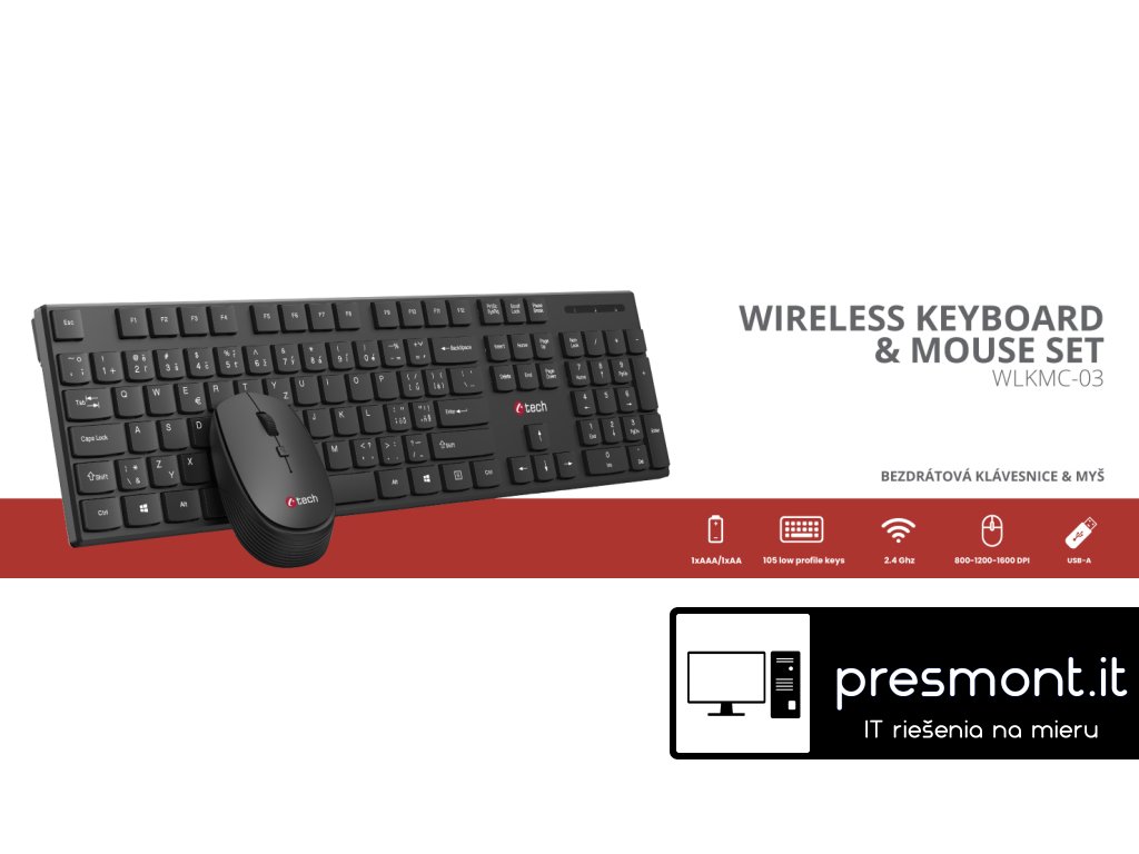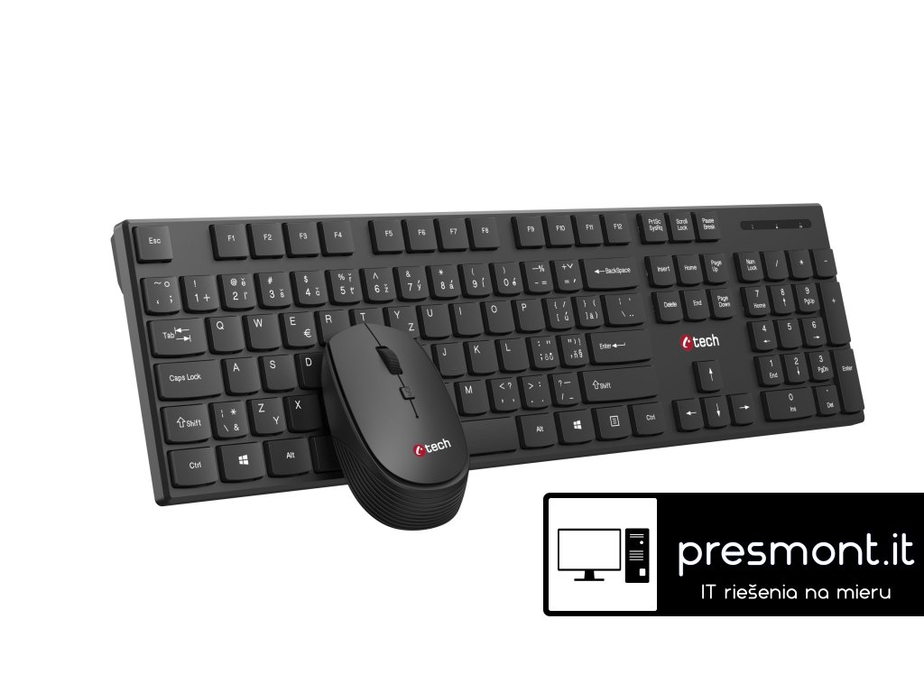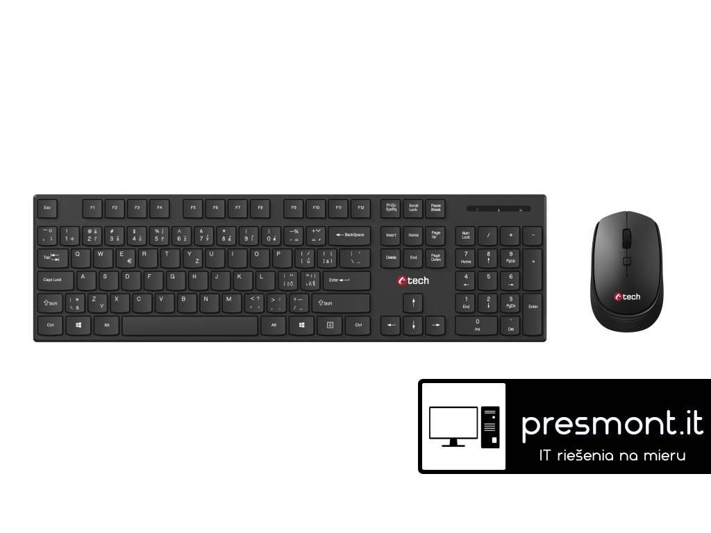 Klávesnice C-TECH WLKMC-03, bezdrátový combo set s myší, černý, USB, CZ/SK