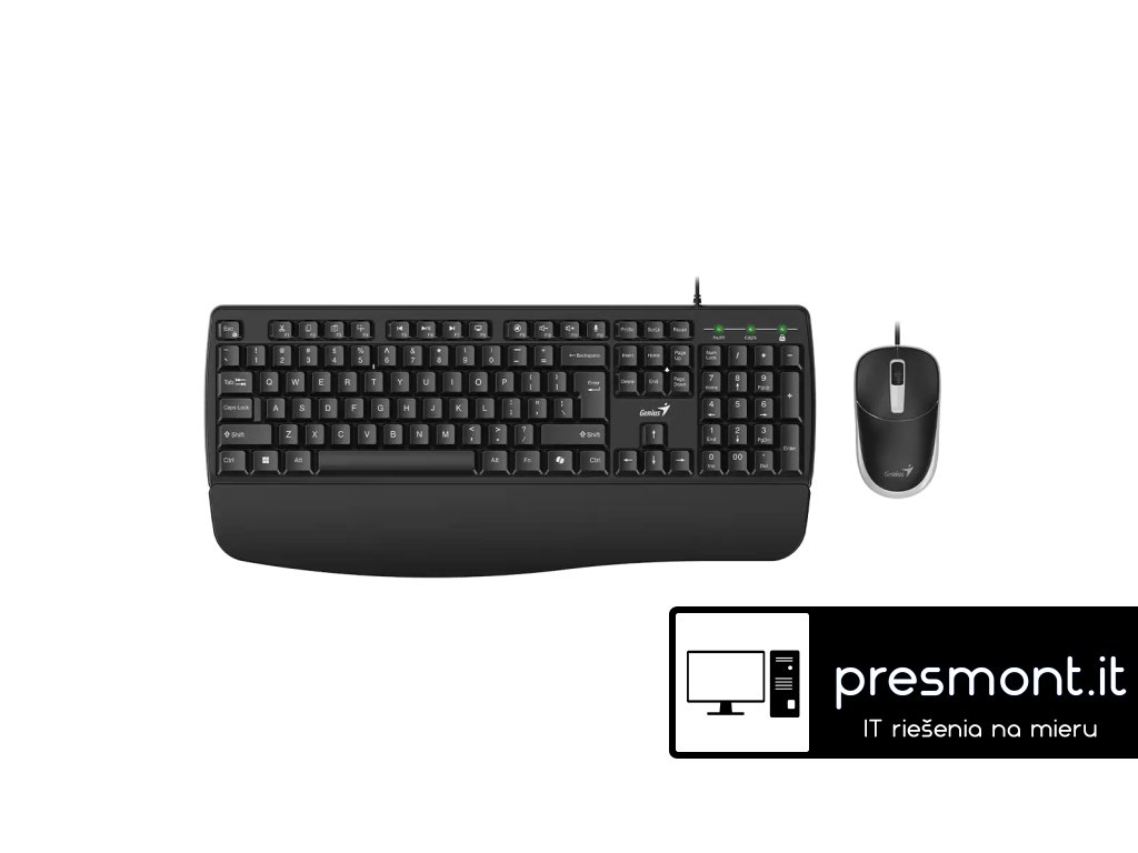 Genius KM-123 Sada klávesnice a myši Copilot Office *Drátová klávesnice Copilot s opěrkou zápěstí *Drátová optická myš s kolečkem, 1200 DPI *Opěrka pro pohodlí předloktí a prstů *Klávesa Copilot pro aktivaci AI Copilot (pro Windows 11 a novější) *Číselná klávesa 00 *USB plug and play Specifikace: Rozhraní: USB Typ kláves: Konkávní Funkční klávesy: Ano, 12 (Úpravy: Vyjmout, Kopírovat, Vložit, Snipaste, Copilot AI: Copilot, Mikrofon, Média: Přehrát, Předchozí, Další stopa, Hlasitost, Ztišení) Odolnost klávesnice proti polití: Ano Počet tlačítek myši: 3 tlačítka (levé, pravé, prostřední s kolečkem) Senzor myši: Optický Rozlišení myši (DPI): 1200 Délka kabelu (m): Klávesnice: 1.5 m, Myš: 1.5 mDodatočné parametre
