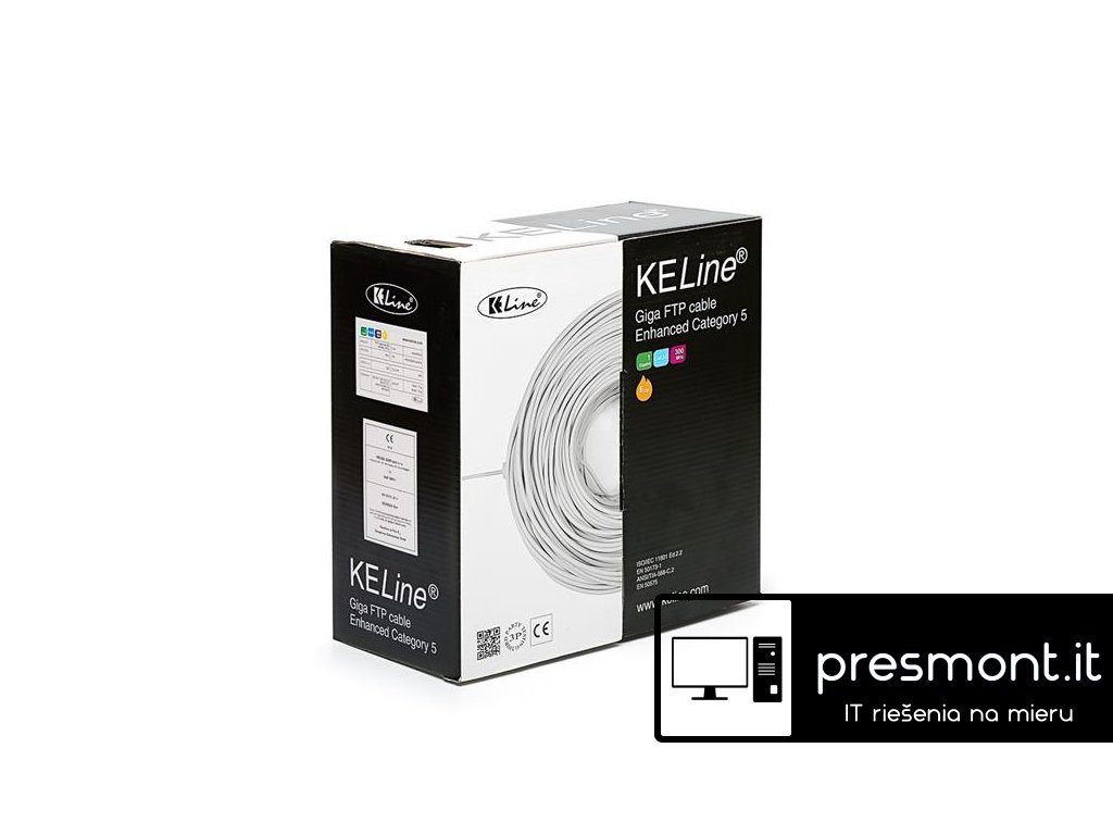 KELine kábel FTP, Cat5E, drôt, PVC, box 305m - šedá