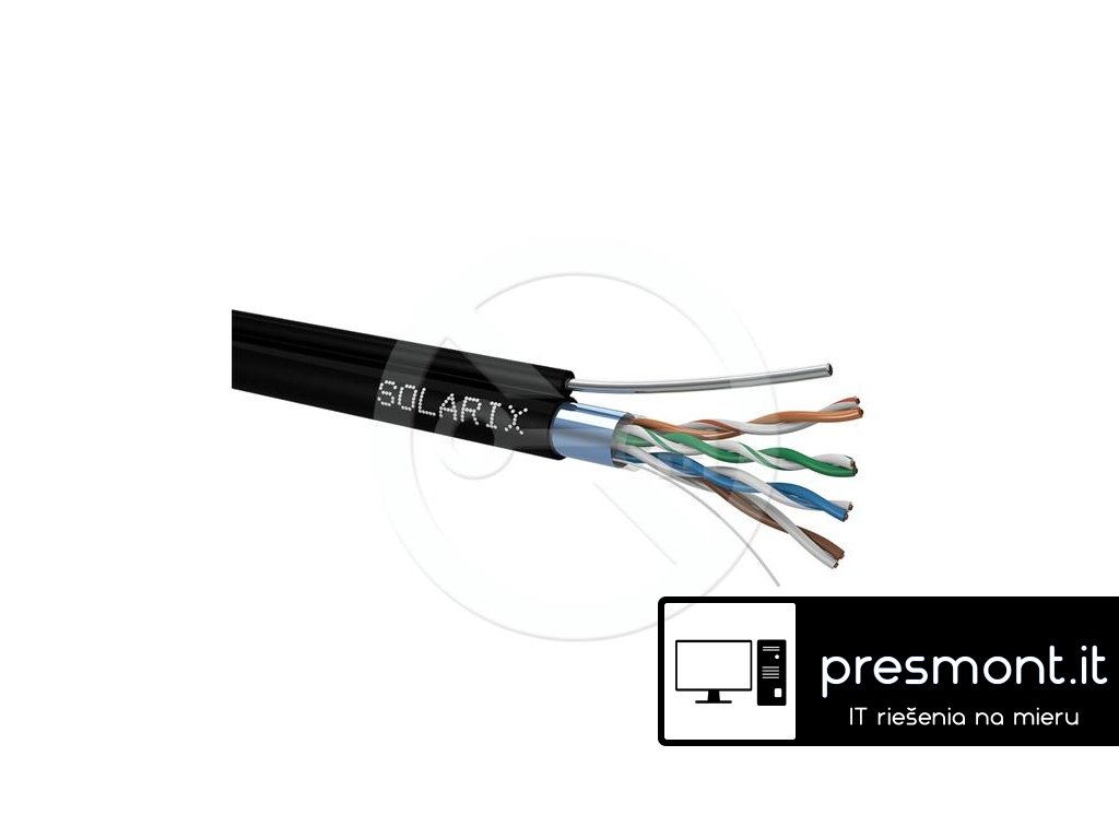 SOLARIX kabel Outdoor, FTP, Cat5E, drôt, PVC, Eca, box 305m, s ocelovým lankom - šedá
