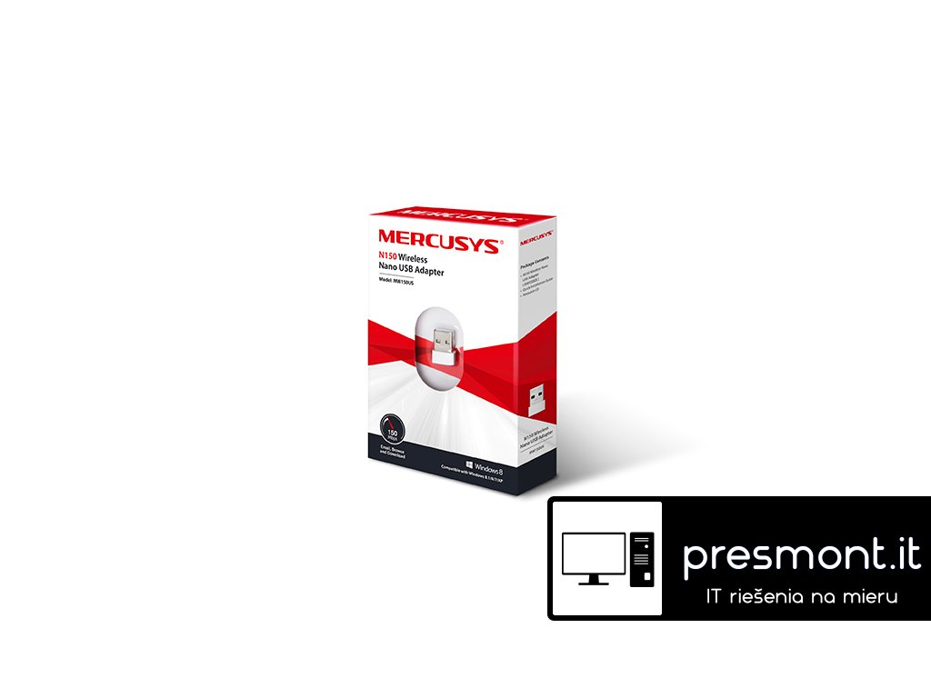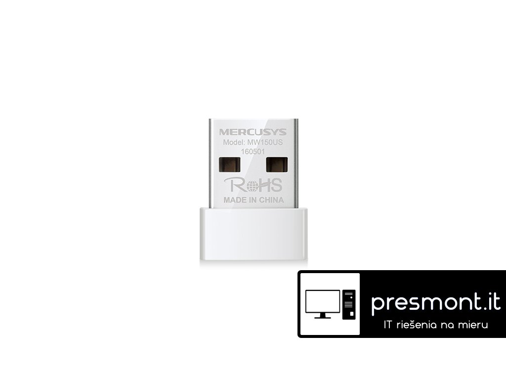 Mercusys MW150US bezdrátový Nano USB adaptér N150. Díky ultrakompaktnímu designu je model MW150US mimořádně vhodný pro použití doma i venku. Vše, co musíte udělat, je připojit tento miniaturní adaptér k USB portu počítače. *Kompaktní a pohodlné řešení pro bezdrátové připojení zařízení *Ideální pro základní internetové aplikace, jako je procházení webu, e-mail a chatování *Podporuje Windows 10 / 8.1 / 8/7 / XP (32 / 64bit) Technické parametry *Rozměry (Š x H x V): 18,9 × 14,8 × 6,85 mm *Typ antény: Vnitřní *Rychlost signálu: 11n: až 150 Mb / s (dynamický),11 g: až 54 Mb / s (dynamický), 11b: až 11 Mb / s (dynamický) *Bezdrátové standardy: IEEE 802.11n, IEEE 802.11g, IEEE 802.11b *Frekvence: 2,400 - 2,4835 GHz *Rozhraní: USB 2.0 *Certifikace: CE, ROHS Odkaz na web výrobce: https://www.mercusys.com/cz/product/details/mw150usDodatočné parametre